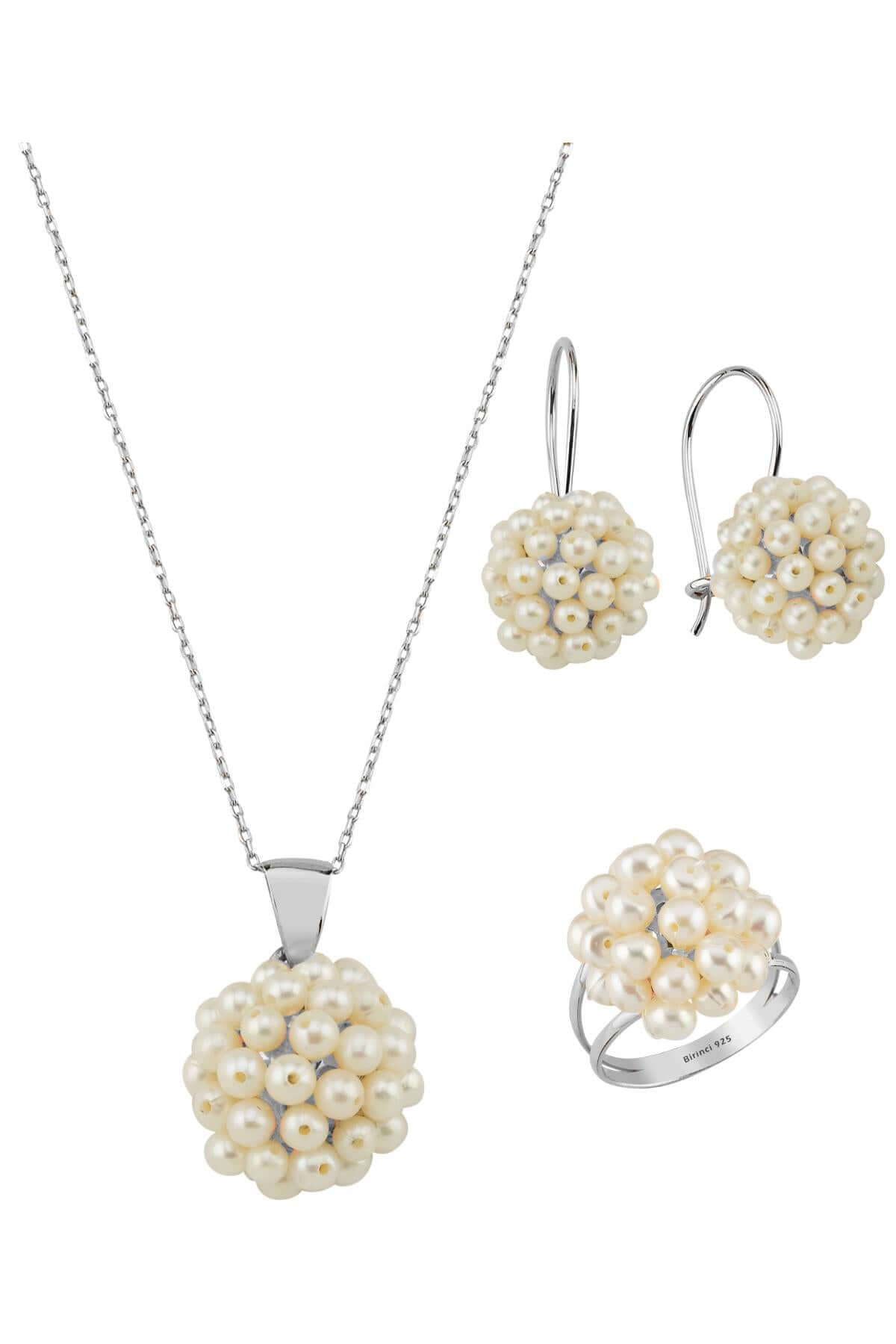 Doğal İnci Küpe Kolye Bileklik Yüzük Dörtlü Set | | Birinci1926
