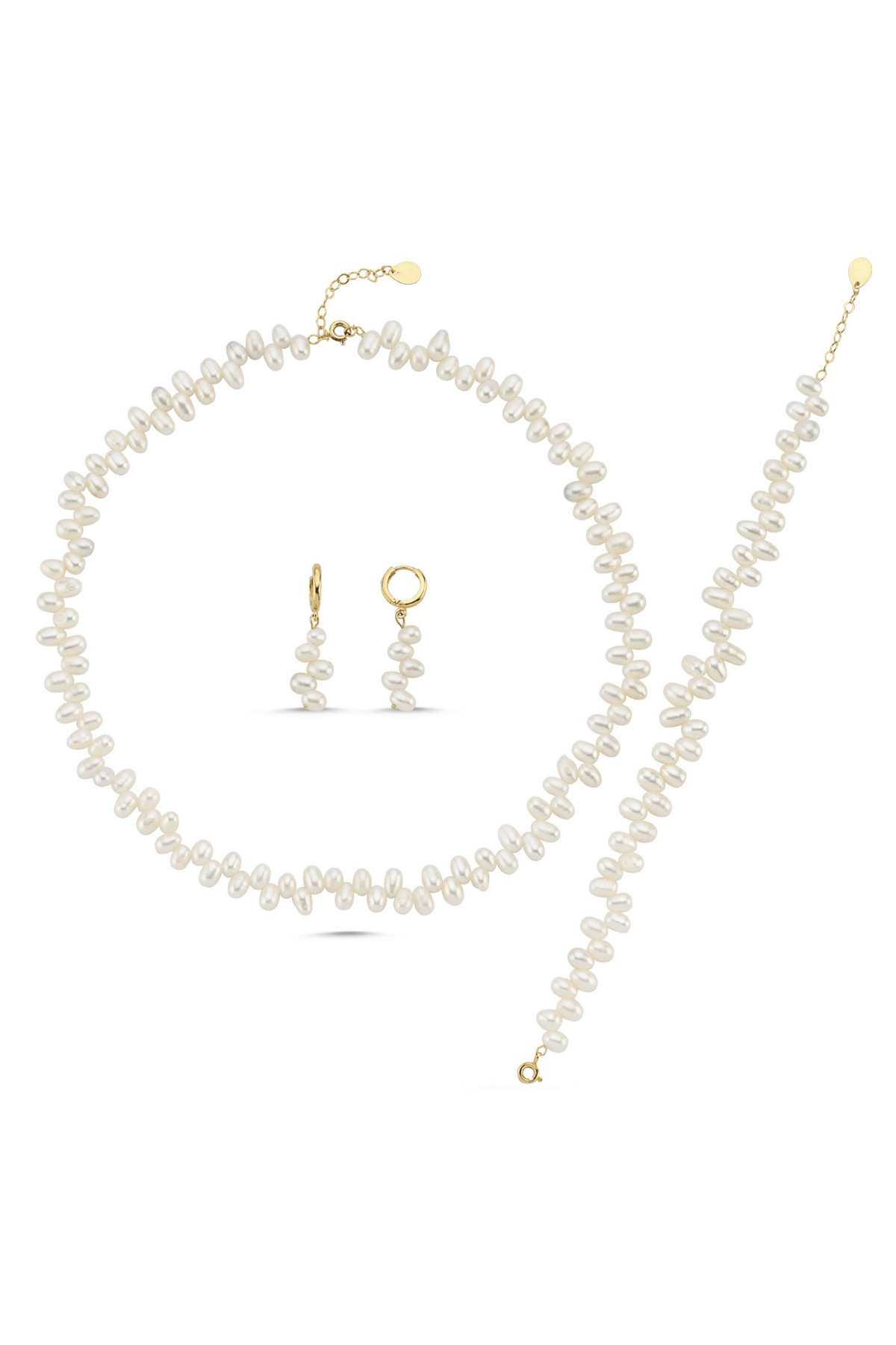 Barok Doğal İnci Kolye Bileklik Küpe Üçlü Set