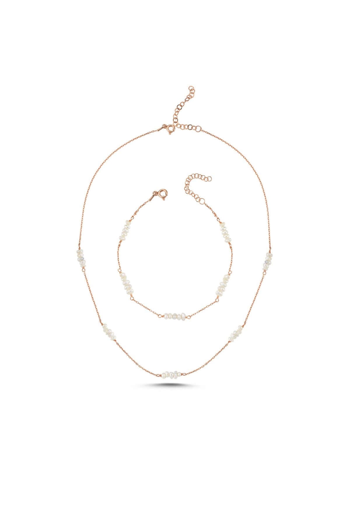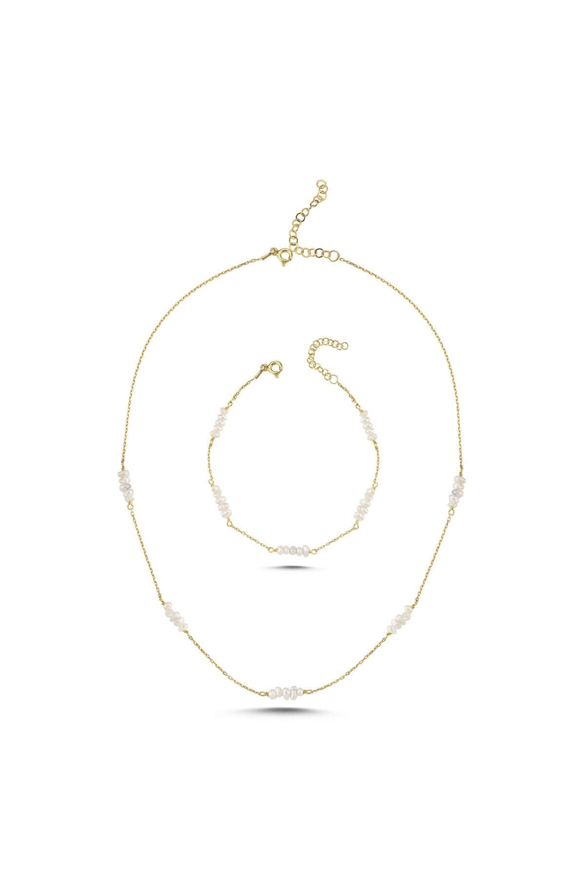 Zincirli Çıtır Doğal İncili Kolye Bileklik İkili Set