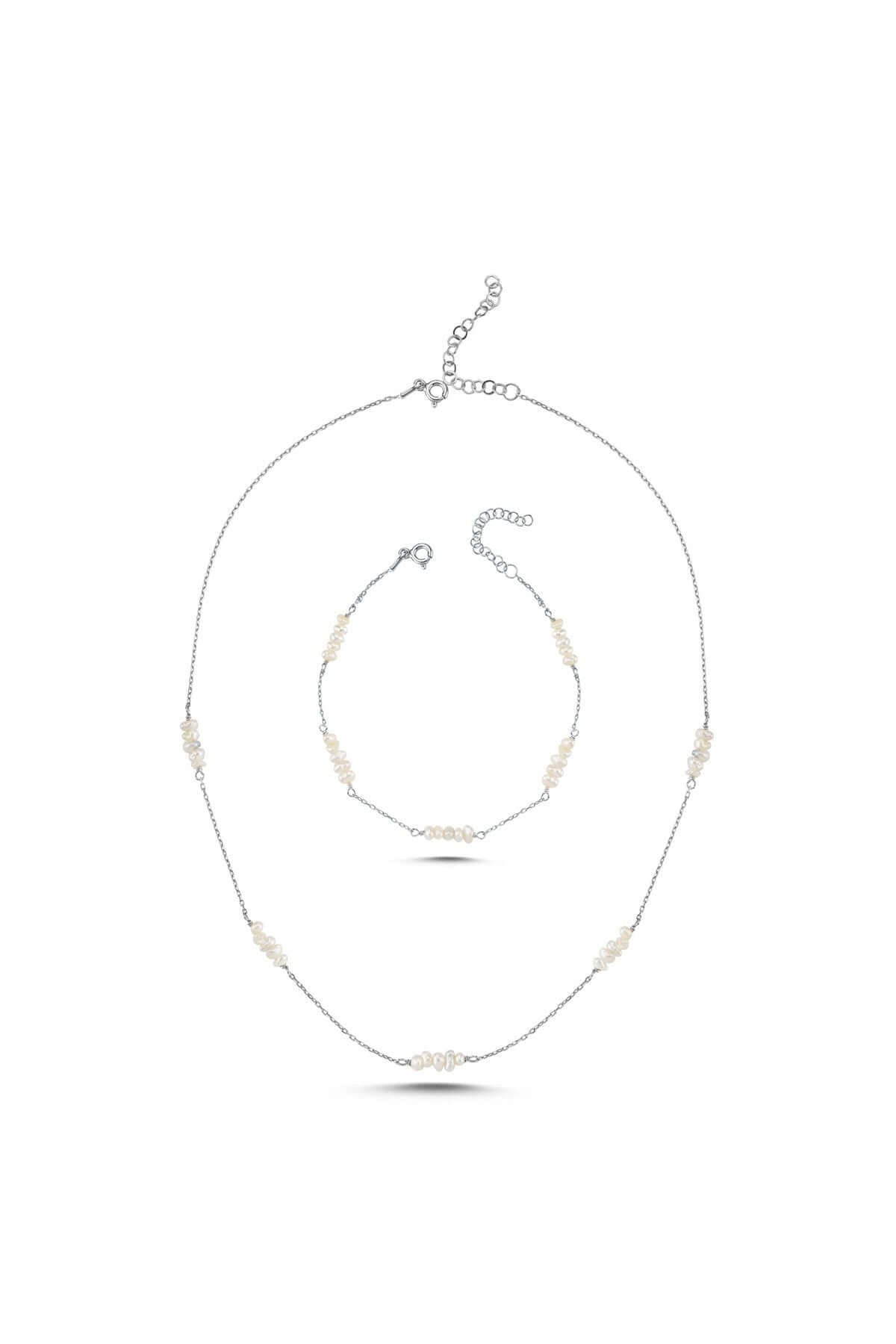Ürün Adı: 925 Ayar Gümüş Zincirli Çıtır Doğal İncili Kolye Bileklik İkili Set