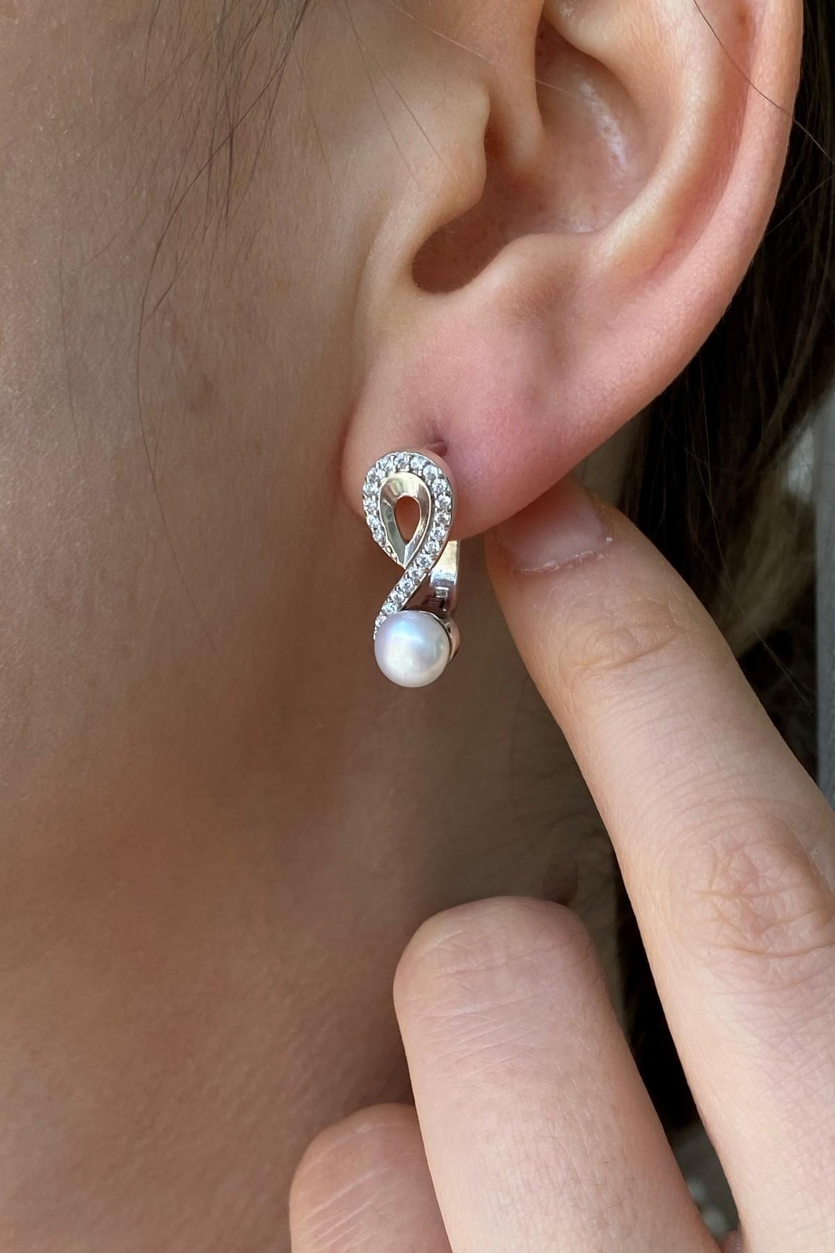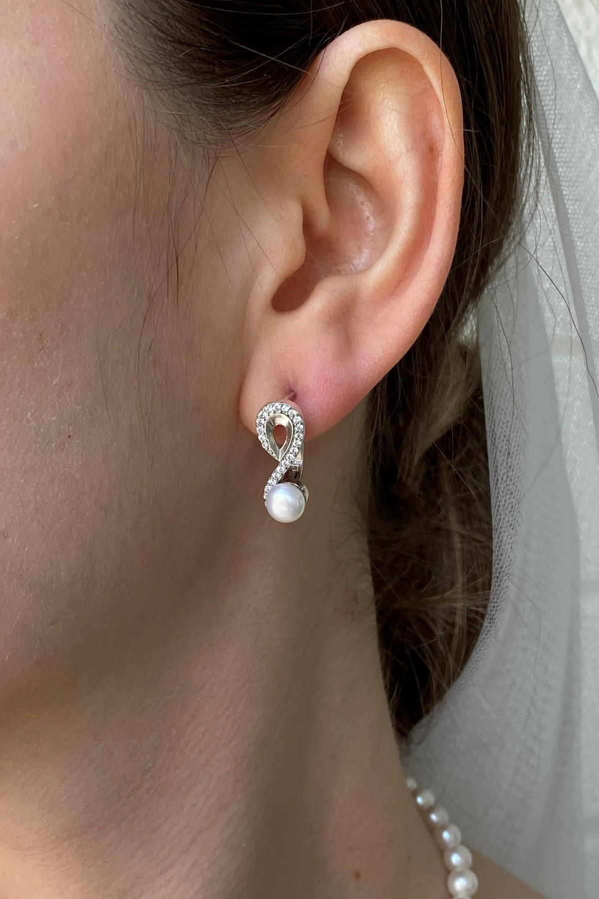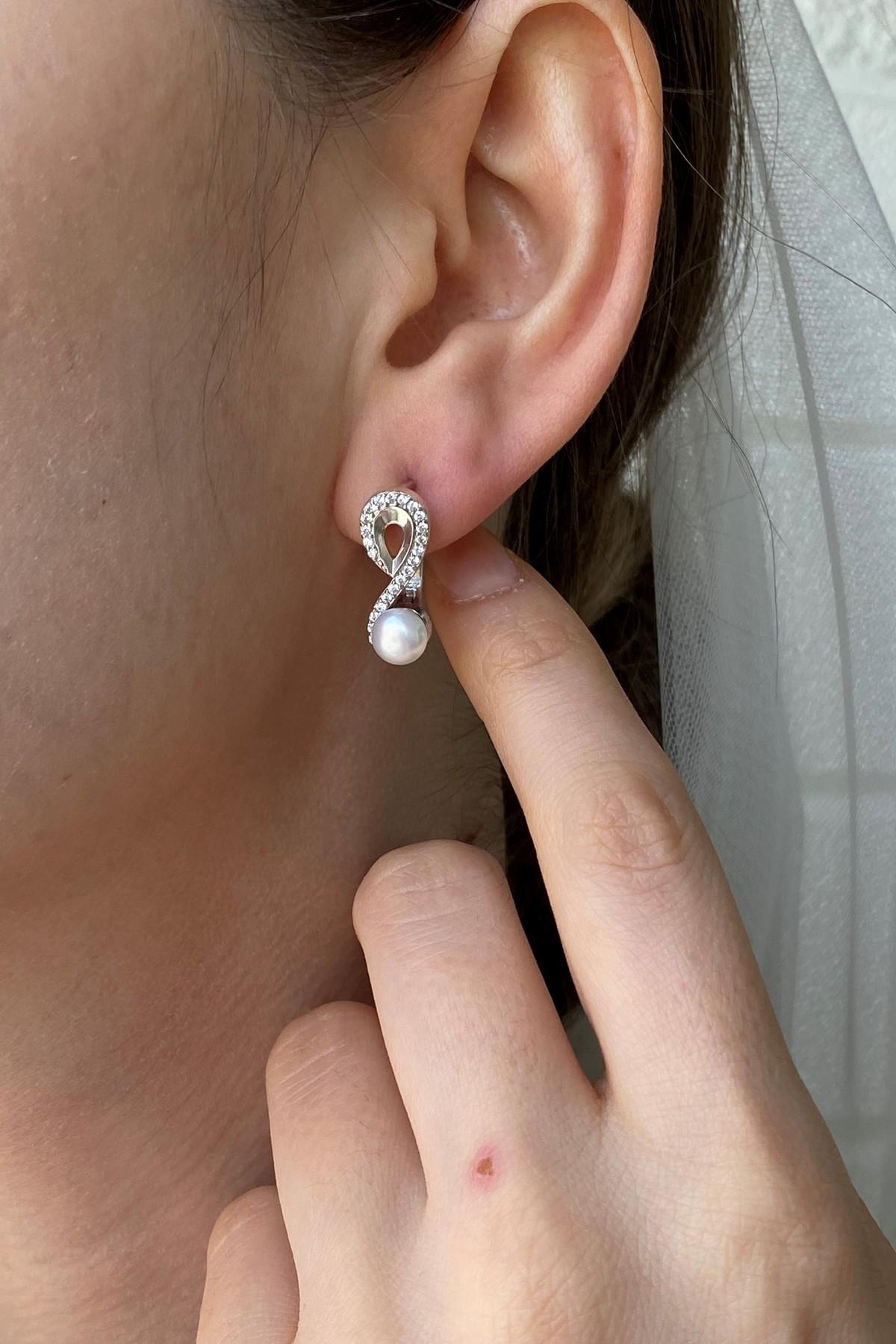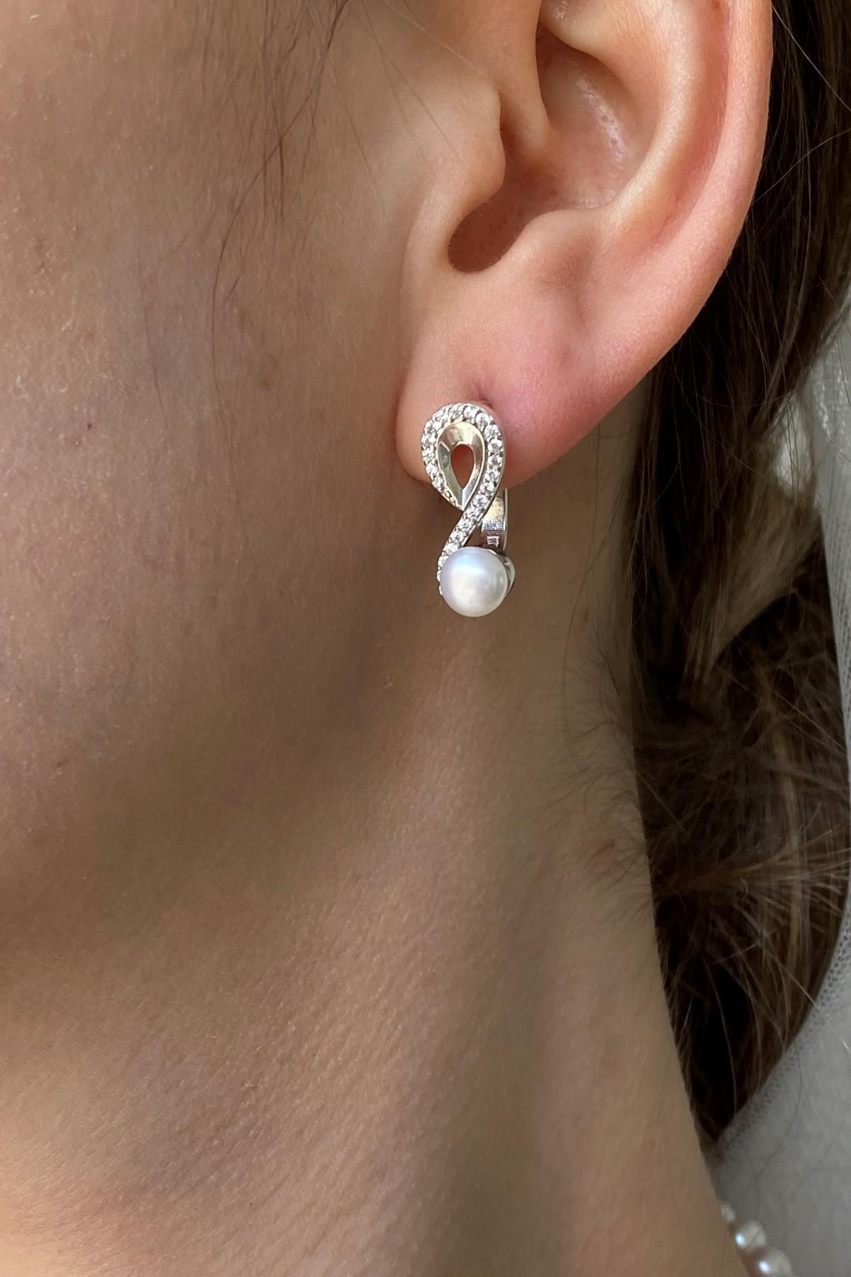 Ürün Adı: 925 Ayar Gümüş Zirkon Taşlı Doğal İnci Kadın Küpe