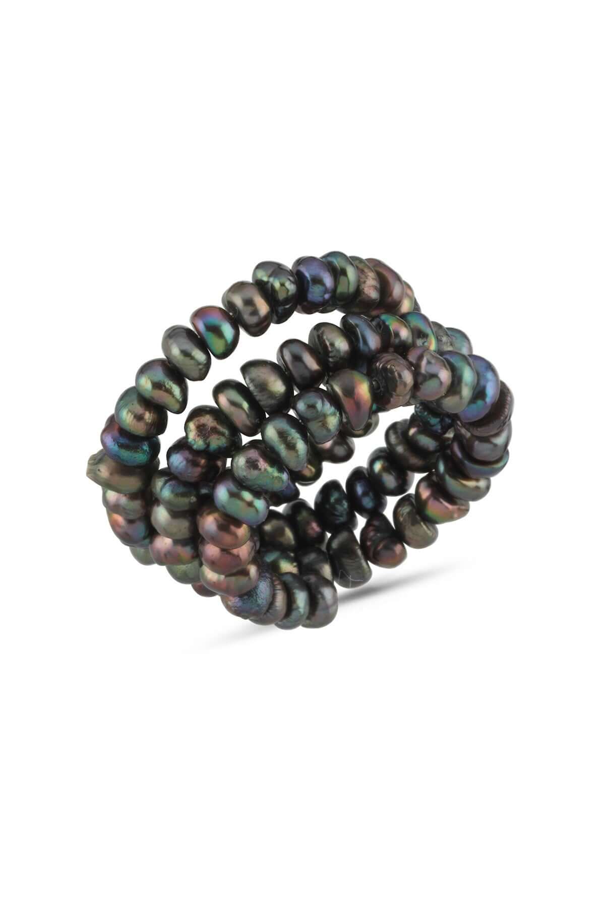 Ayarlanabilir Siyah Doğal İnci Sarmal Yüzük