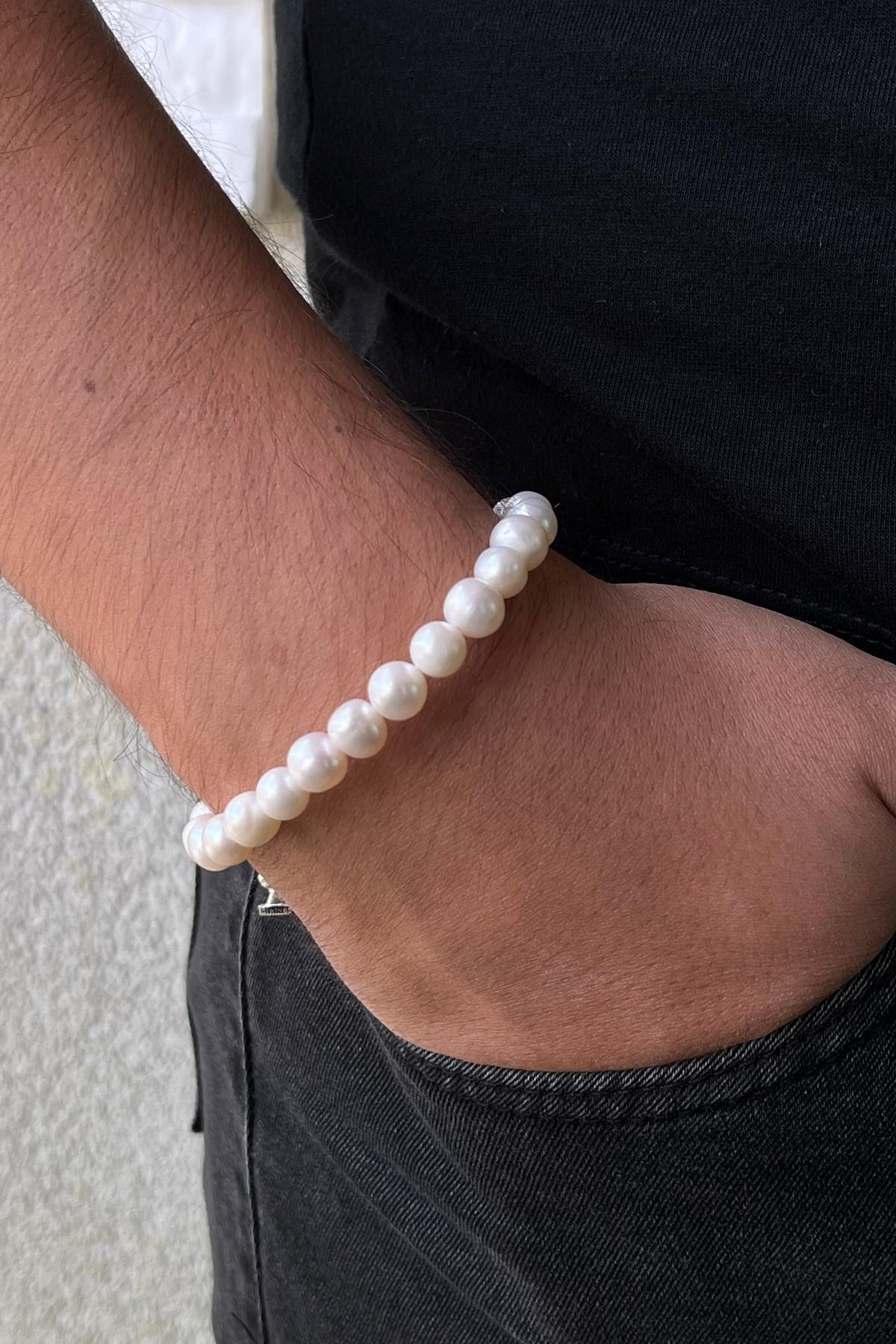 Ürün Adı: 925 Ayar Gümüş 8 mm Sıralı Doğal İnci Bileklik