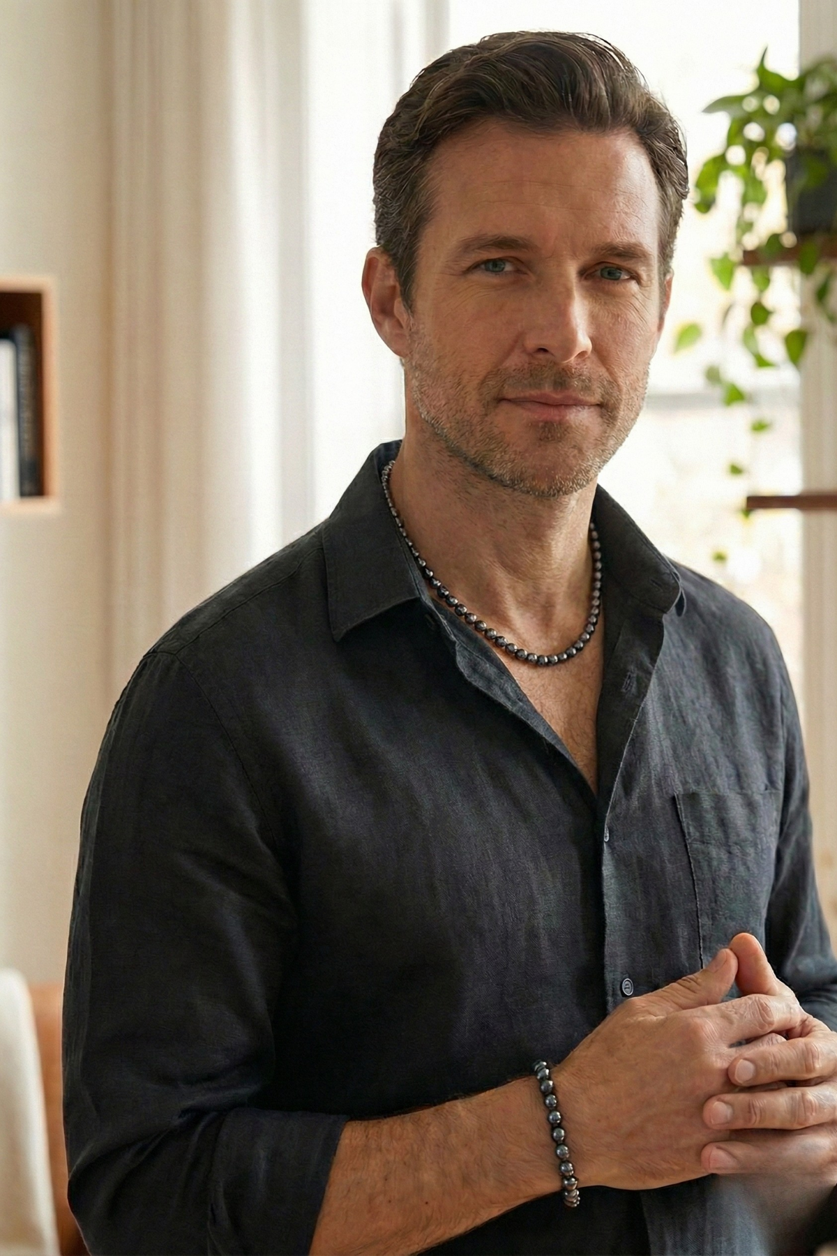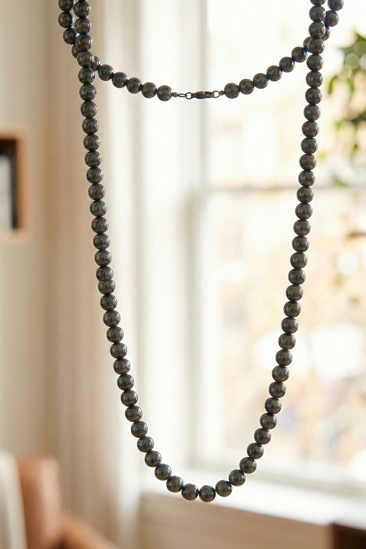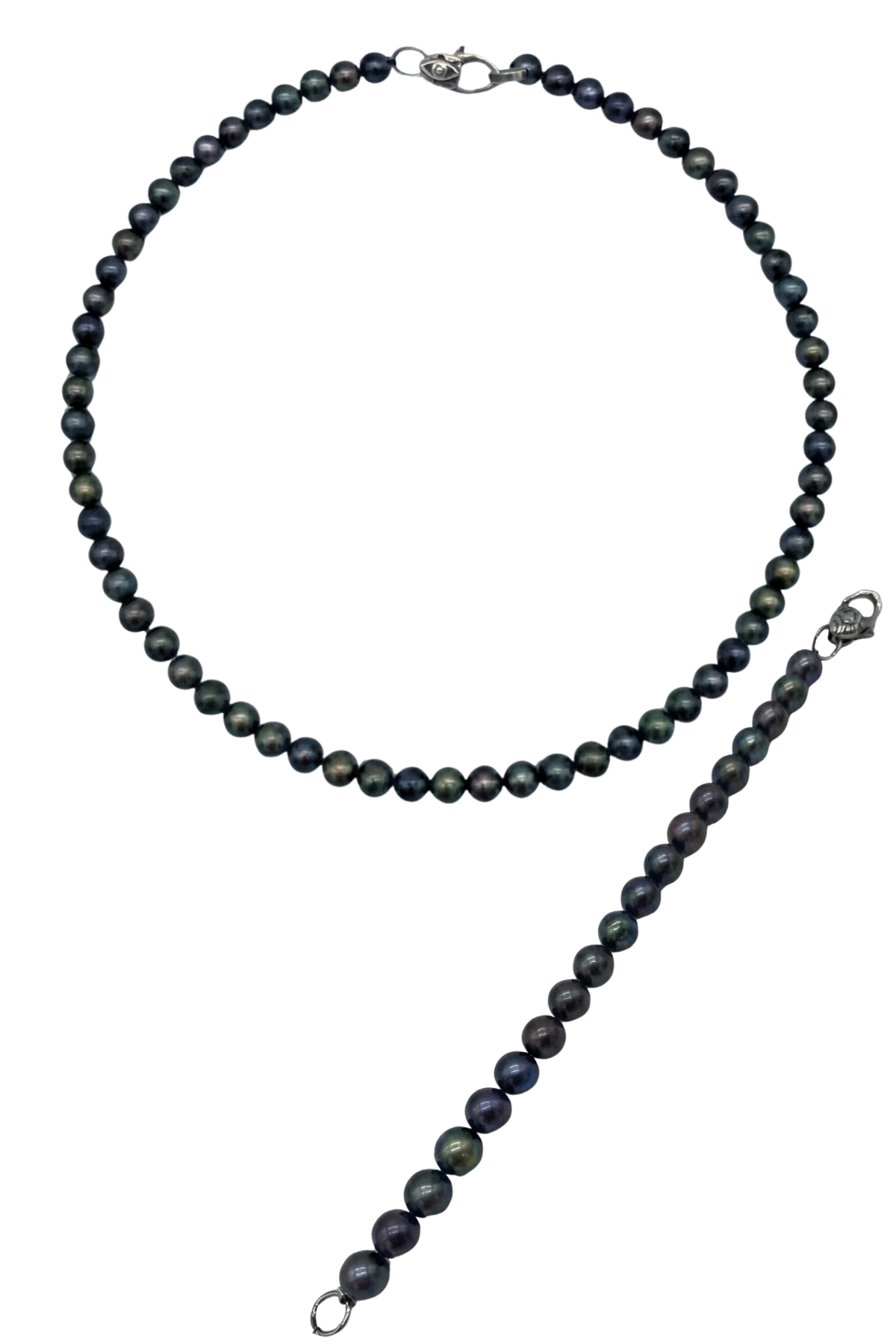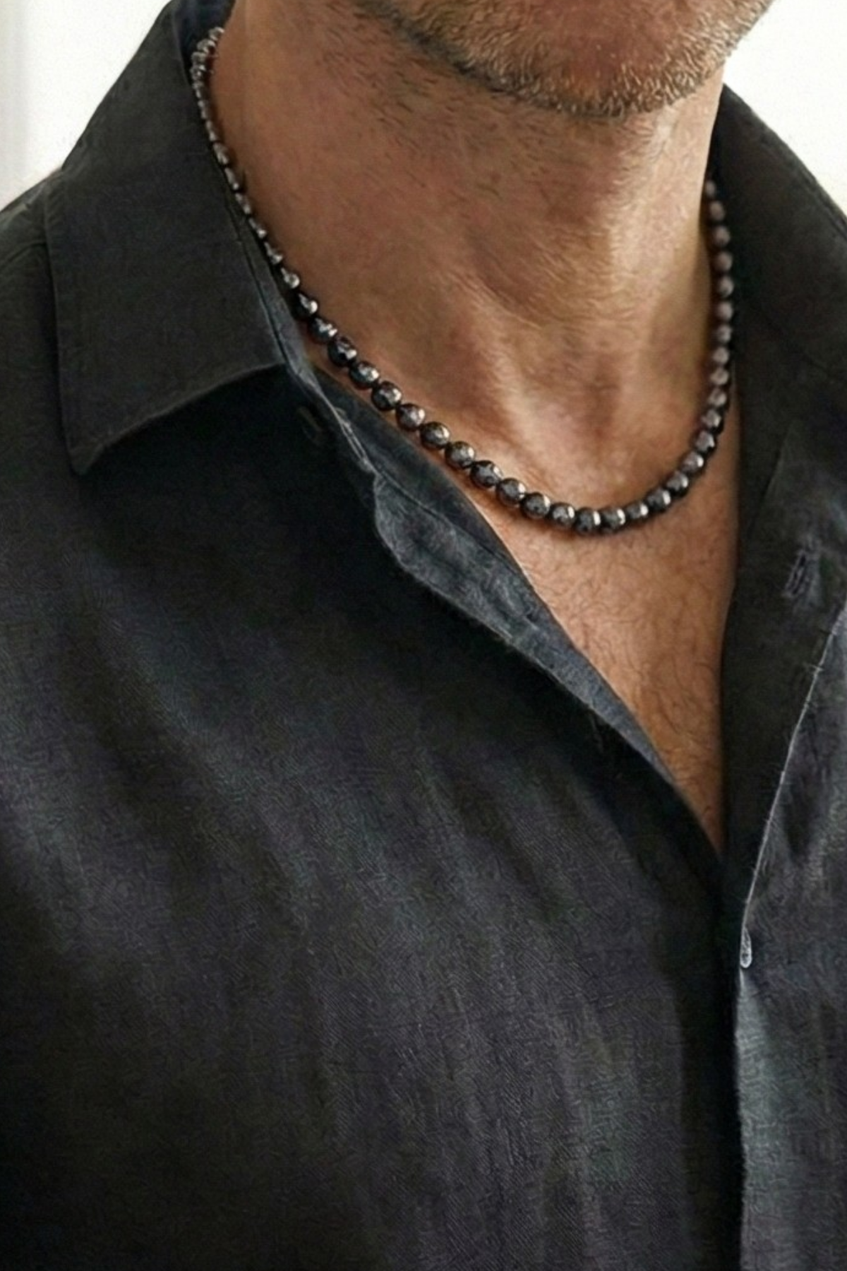 Erkek Siyah Doğal İnci Kolye Bileklik Set