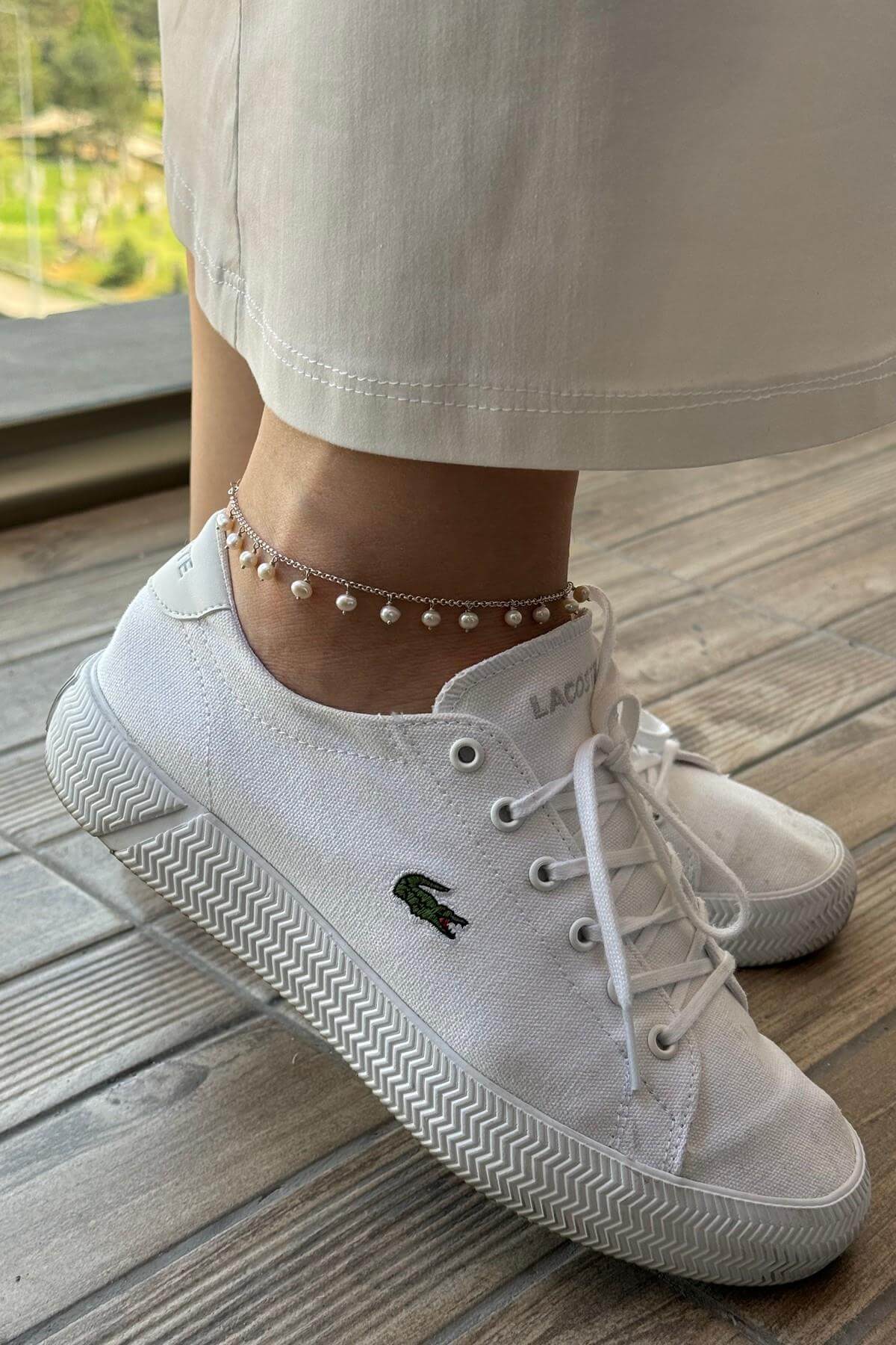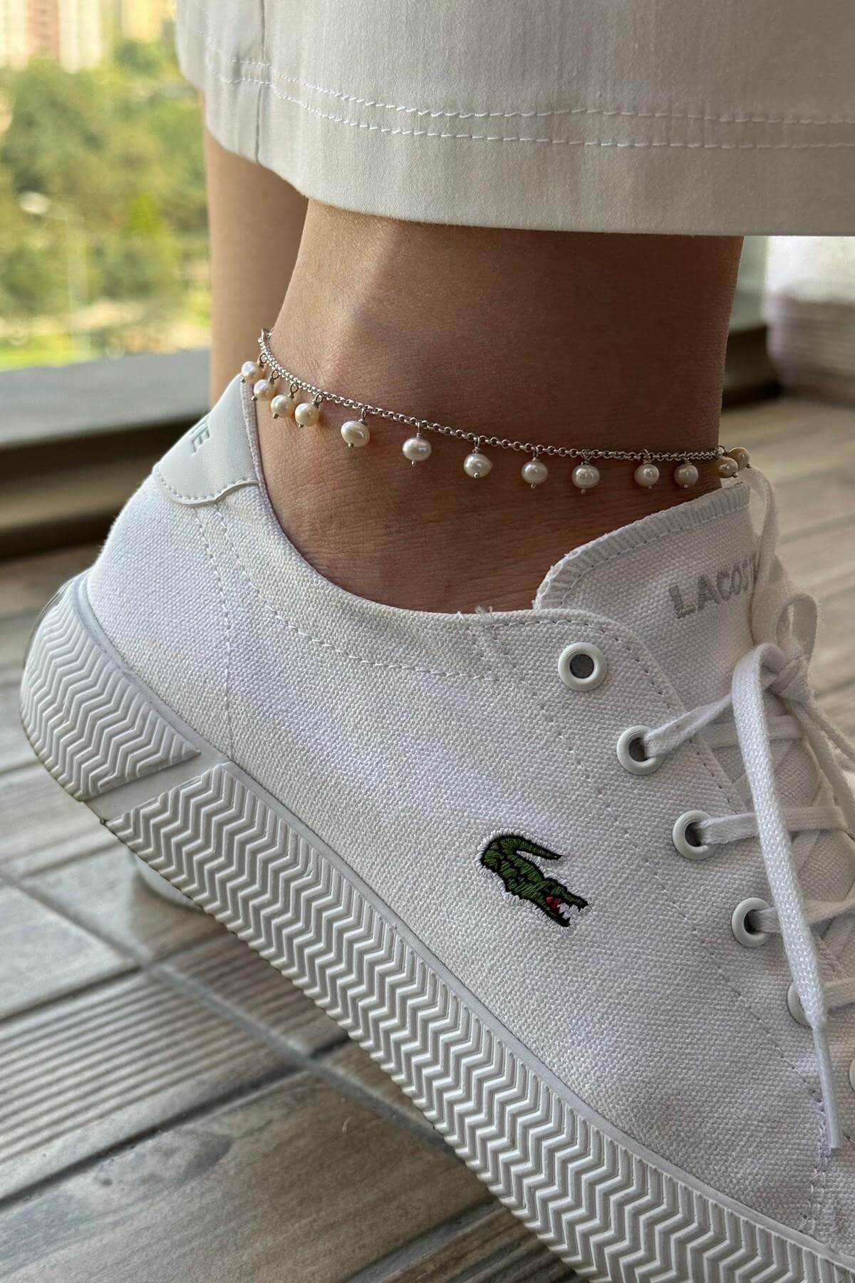 Ürün Adı: 925 Ayar Gümüş Doğal İnci Sallantılı Kadın Halhal