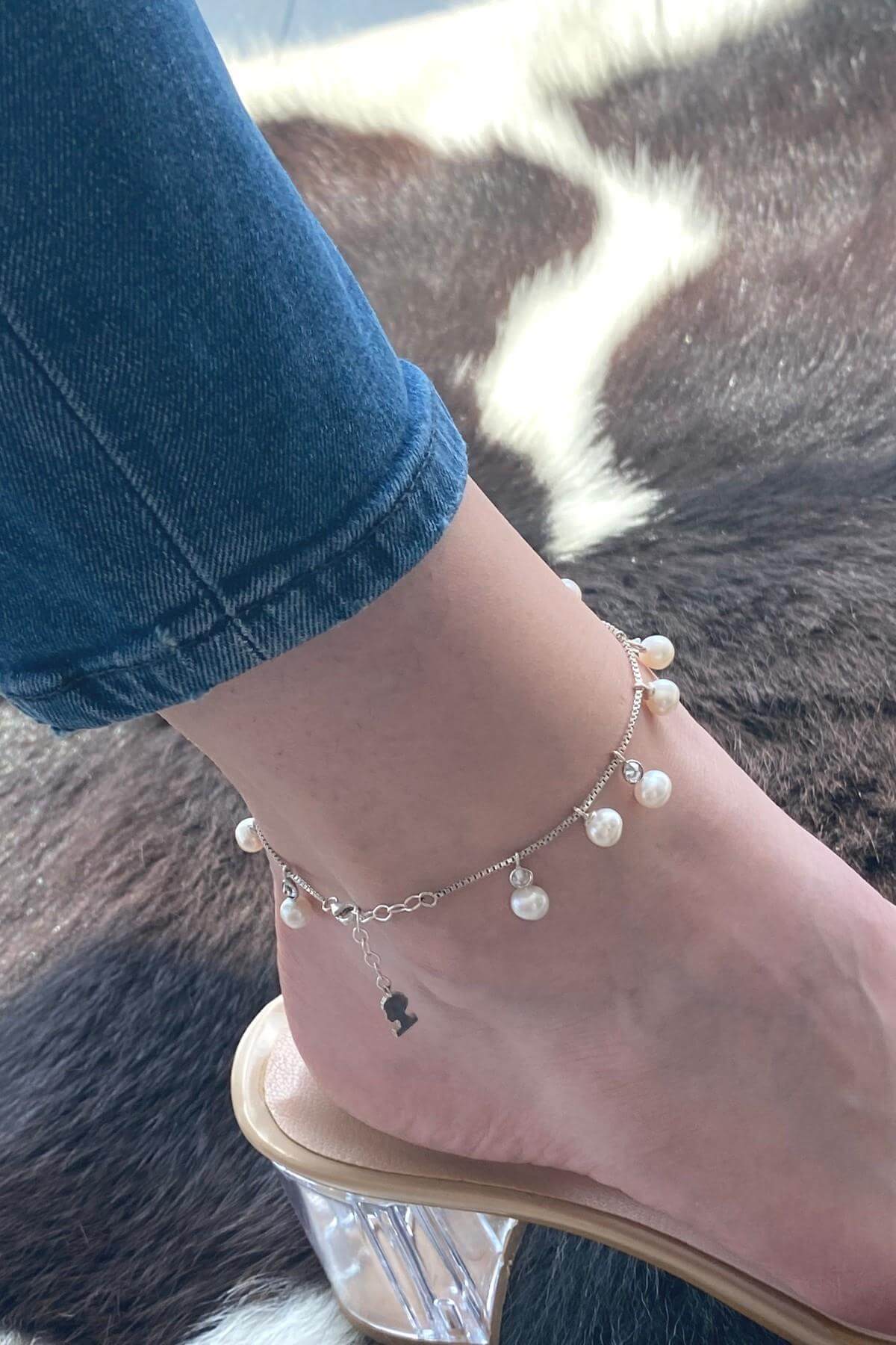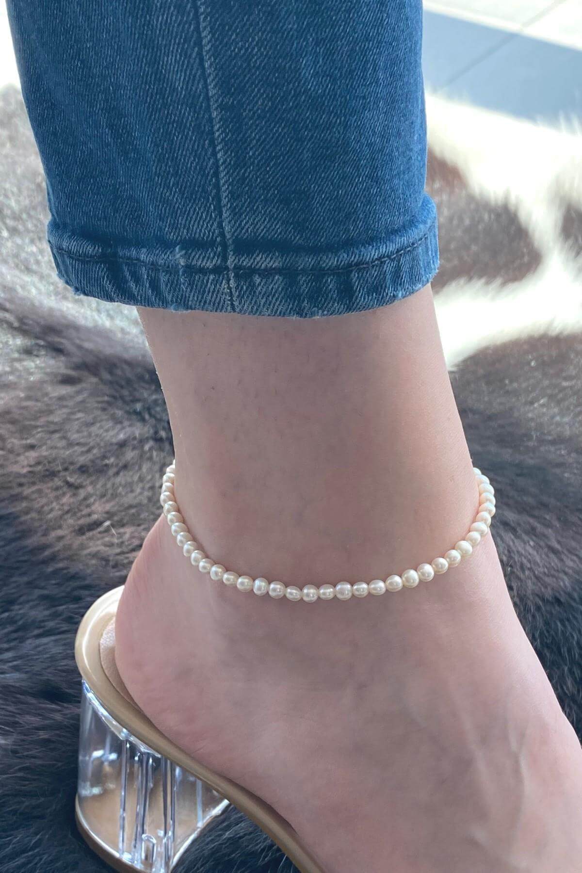 Ürün Adı: 925 Ayar Gümüş Doğal İnci Kadın Halhal