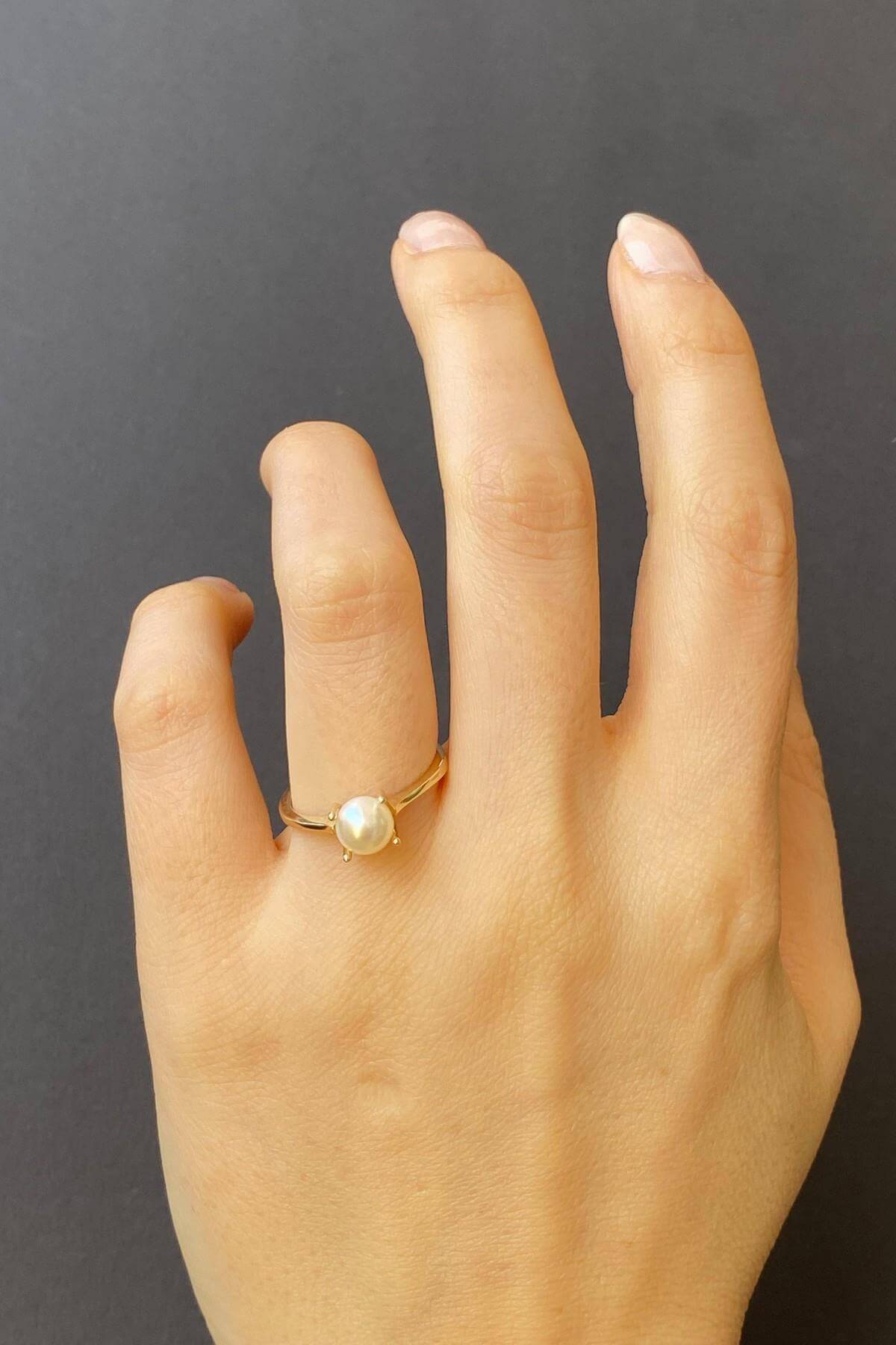 Large Doğal İnci Tek Taş Modelli Yüzük