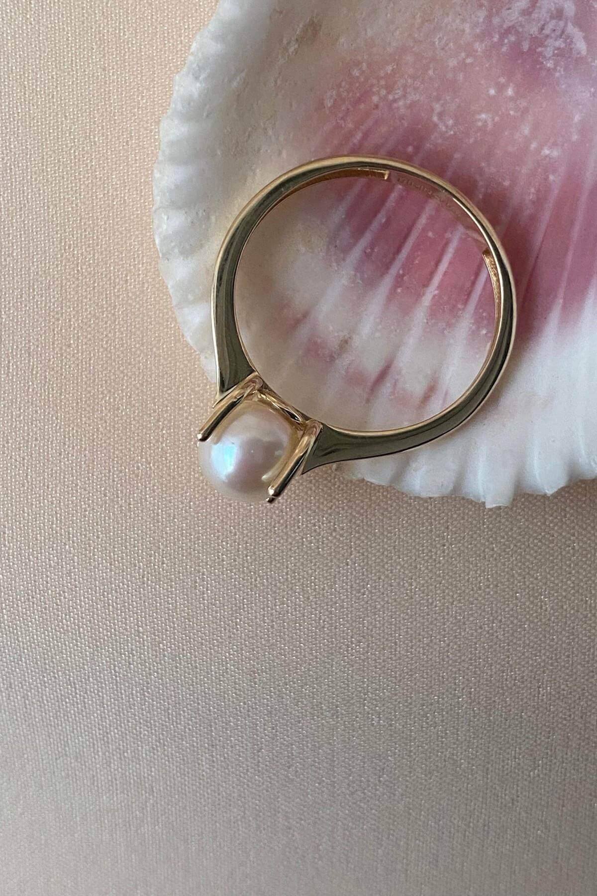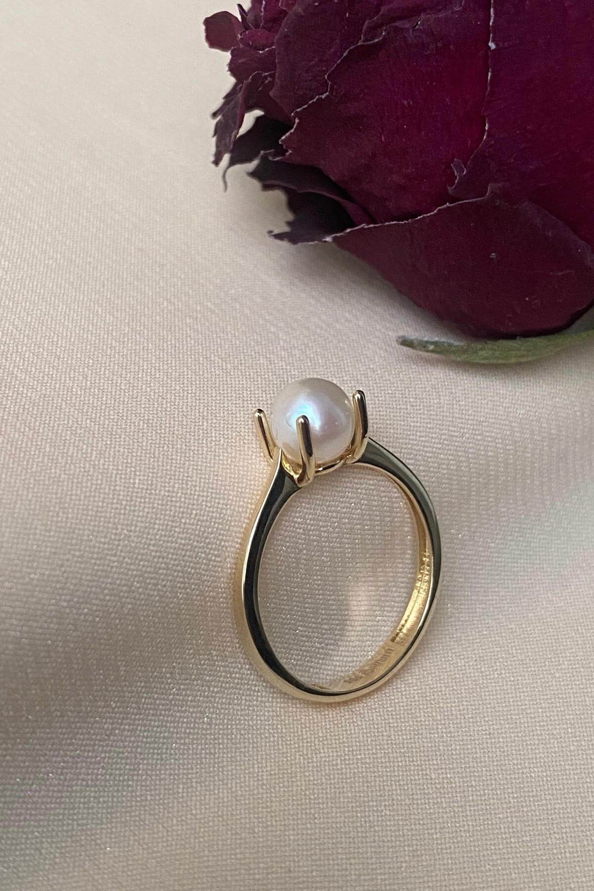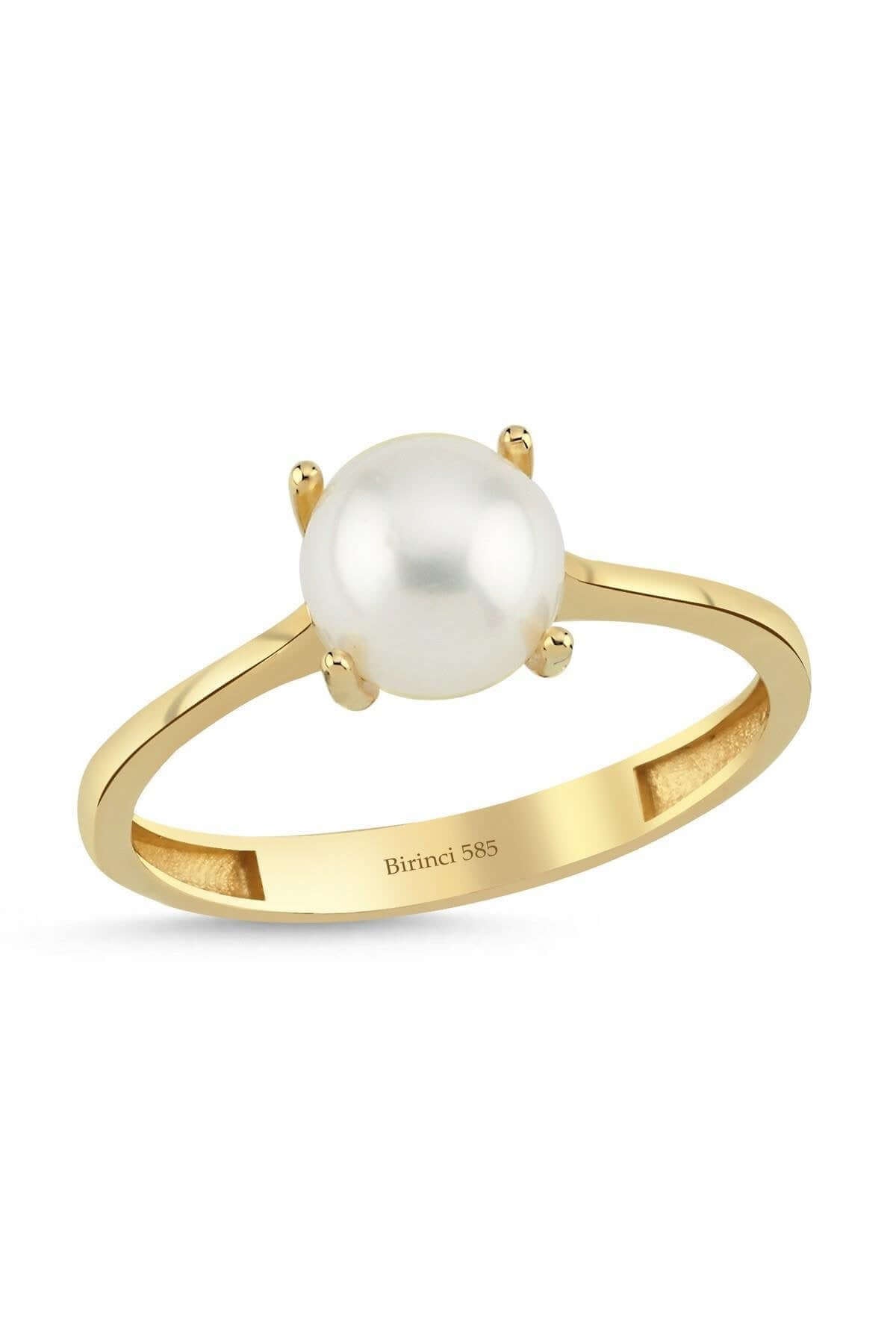 Ürün Adı: 14 Ayar Altın 7 mm Large Doğal İnci Tek Taş Modelli Yüzük