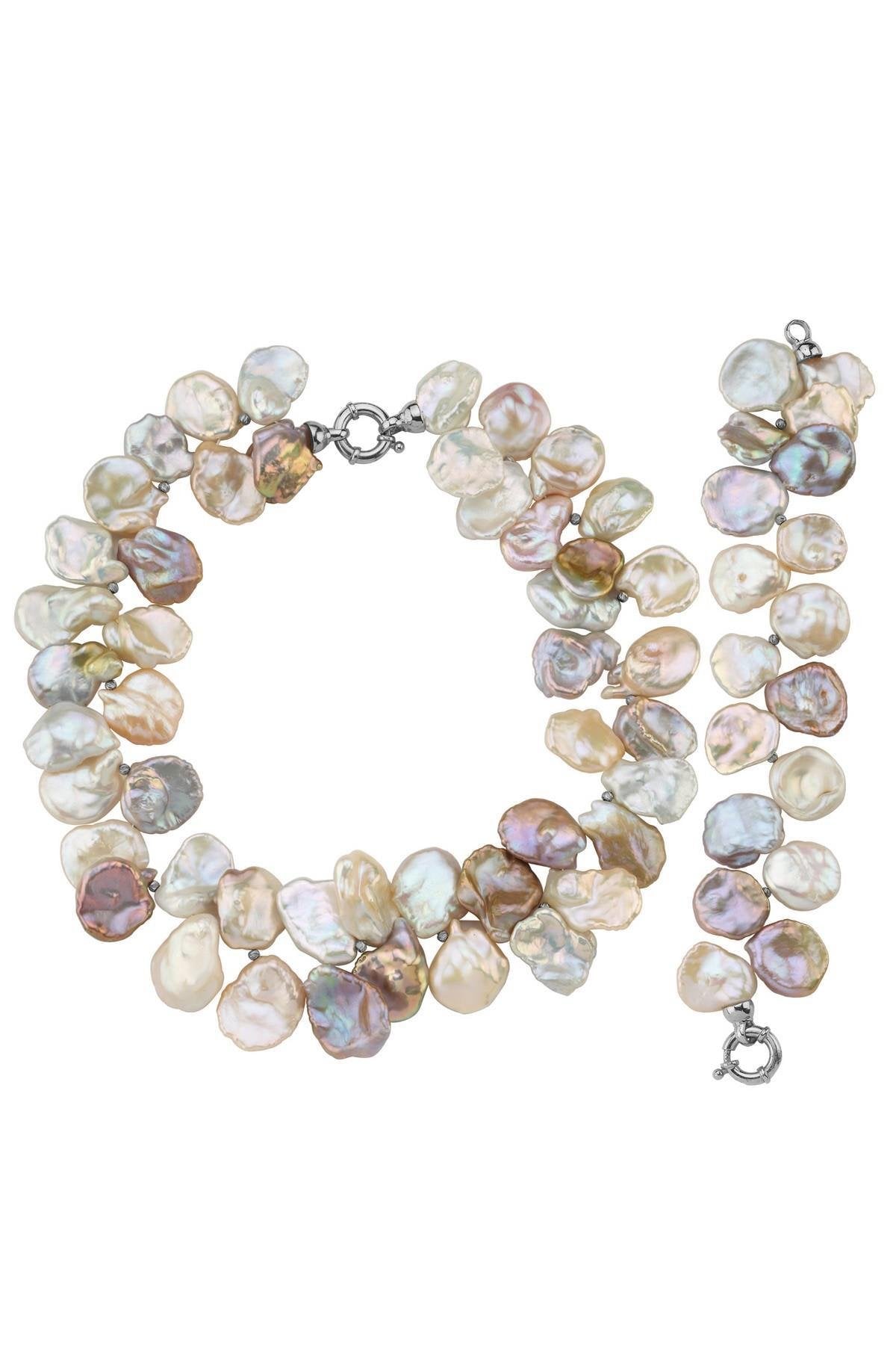 Ürün Adı: 925 Ayar Gümüş Kadın Barok İncili Multicolor Yaprak Kolye Bileklik İkili Set