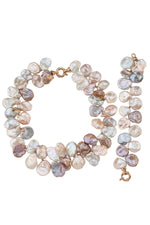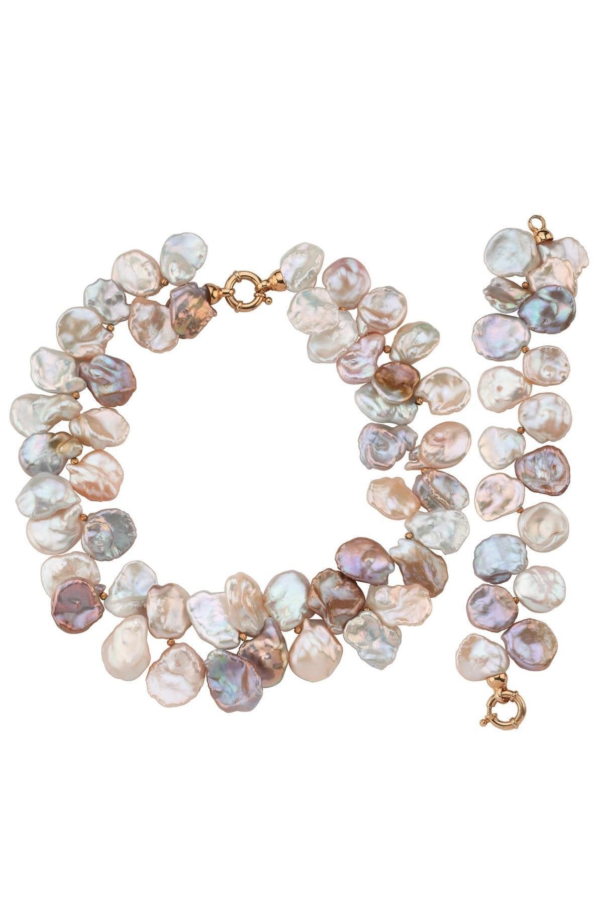 Barok İncili Multicolor Yaprak Kolye Bileklik İkili Set