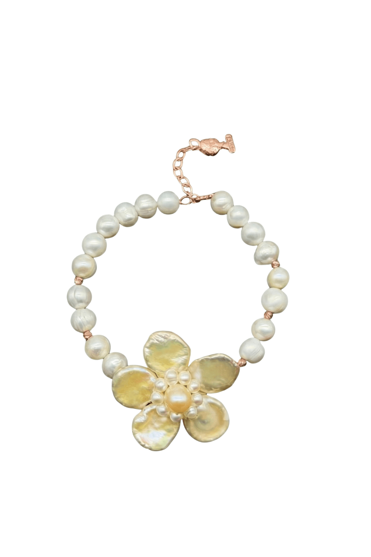 Doğal inci çiçek bileklik, incilerle dizayn edilmiş şık bir aksesuar.