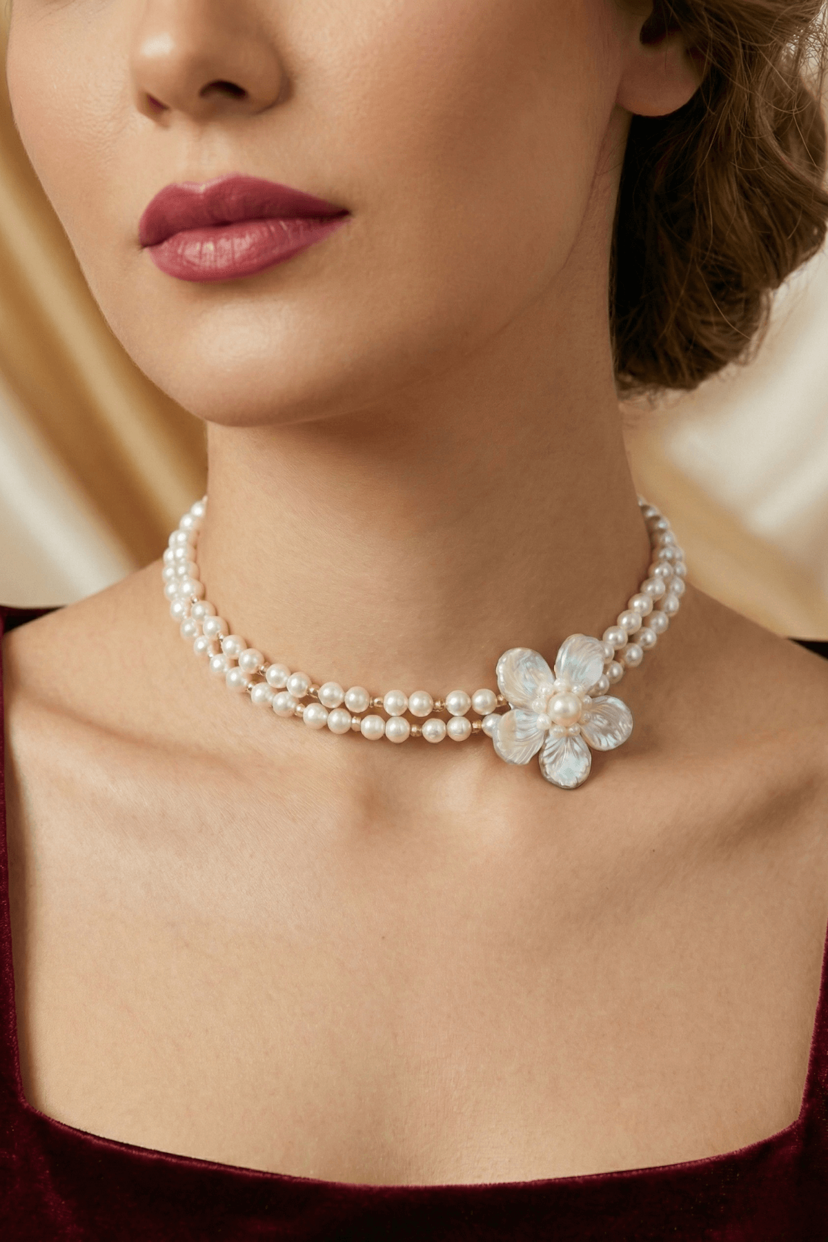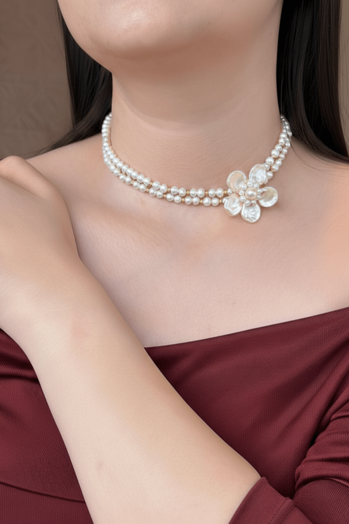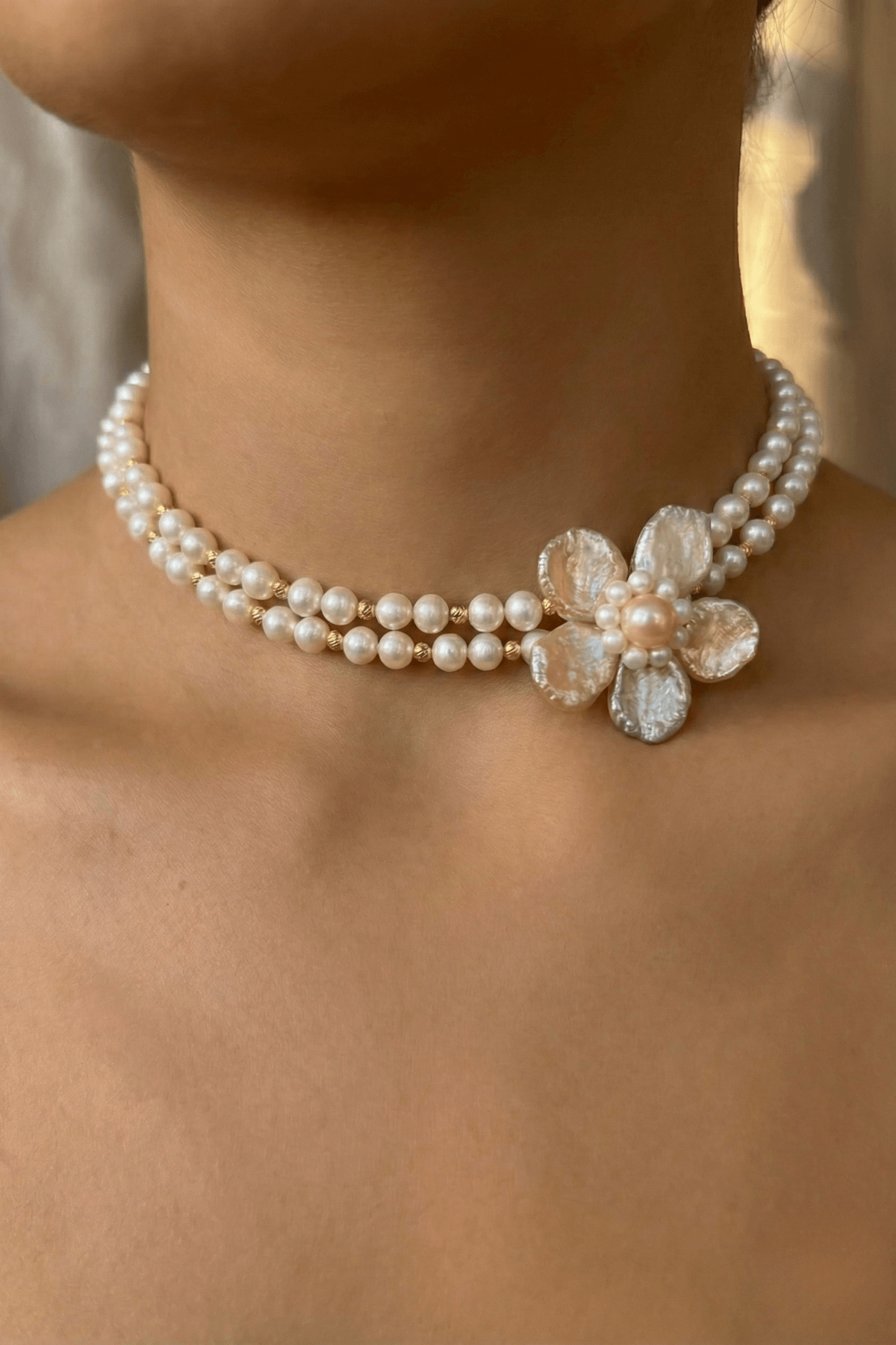 Doğal İnci Çiçek Choker Kolye
