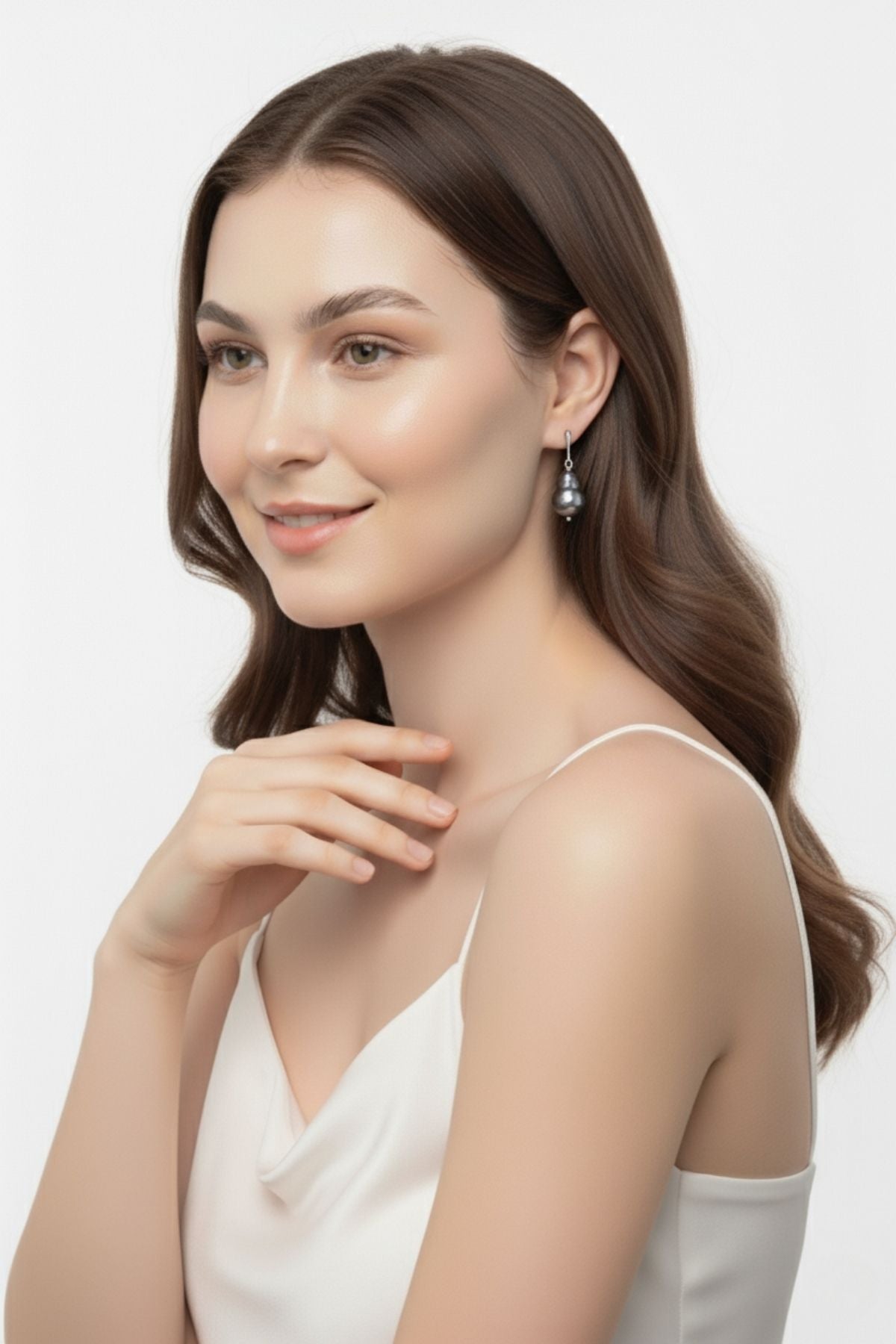 Doğal Gri Barok İnci Küpe