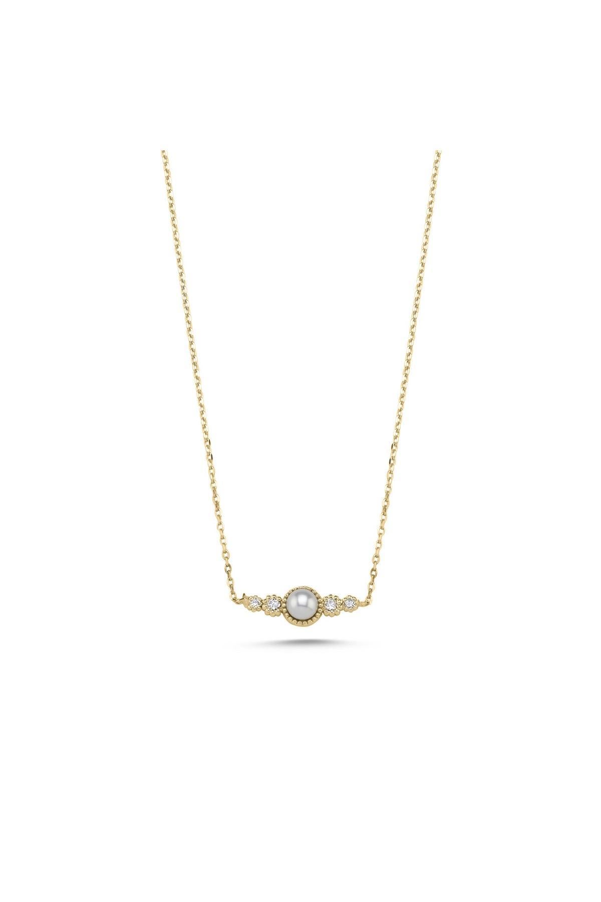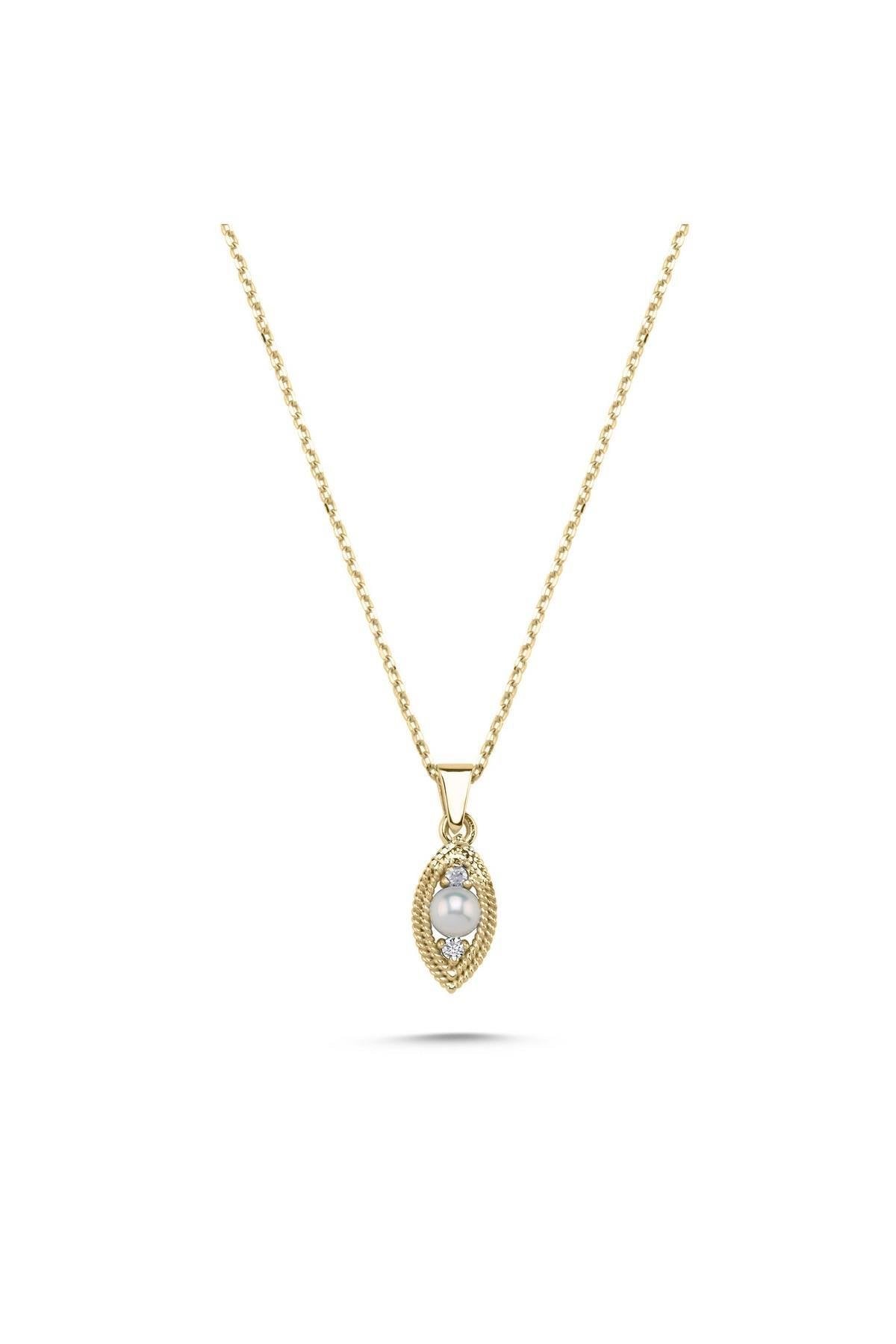 Ürün Adı: 14 Ayar Altın Çıtır Doğal İncili 0,11 Ct Pırlanta Kolye