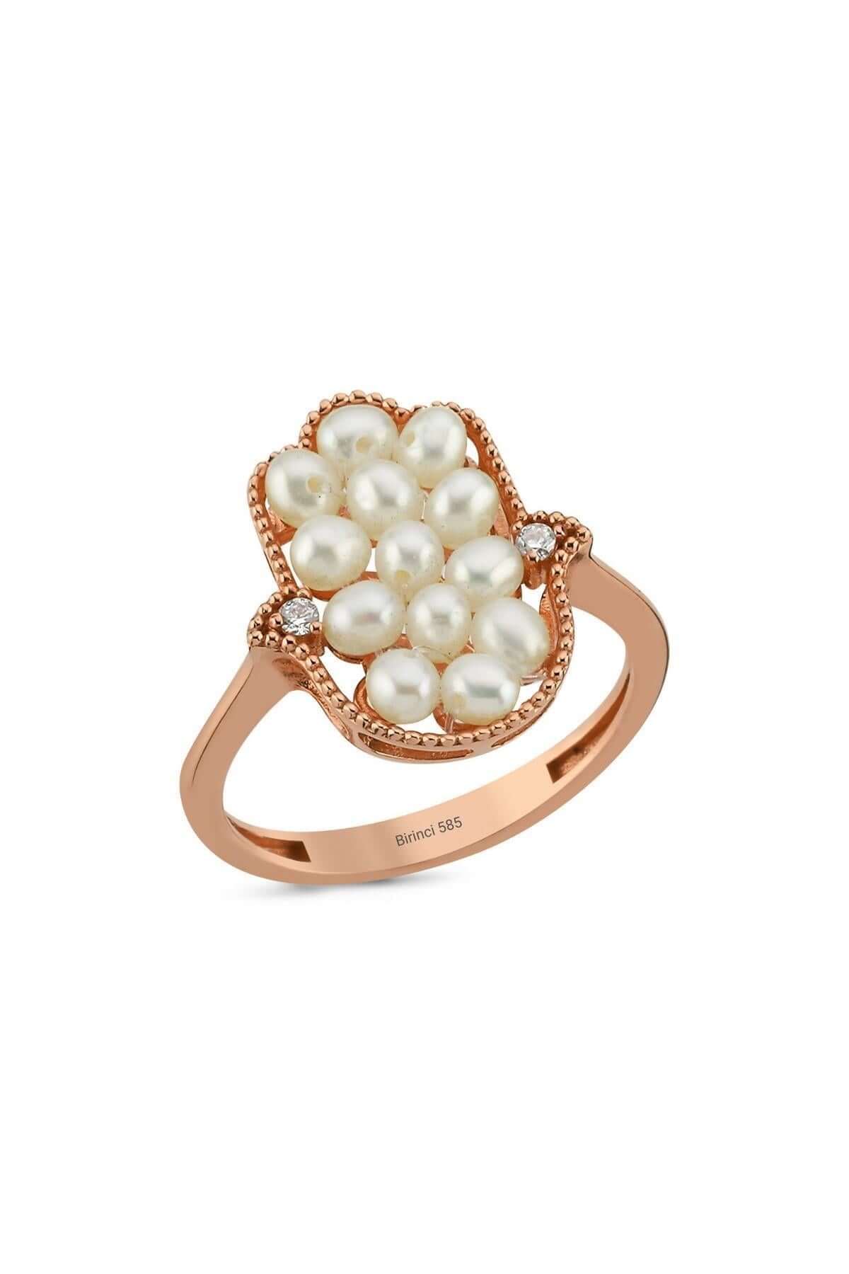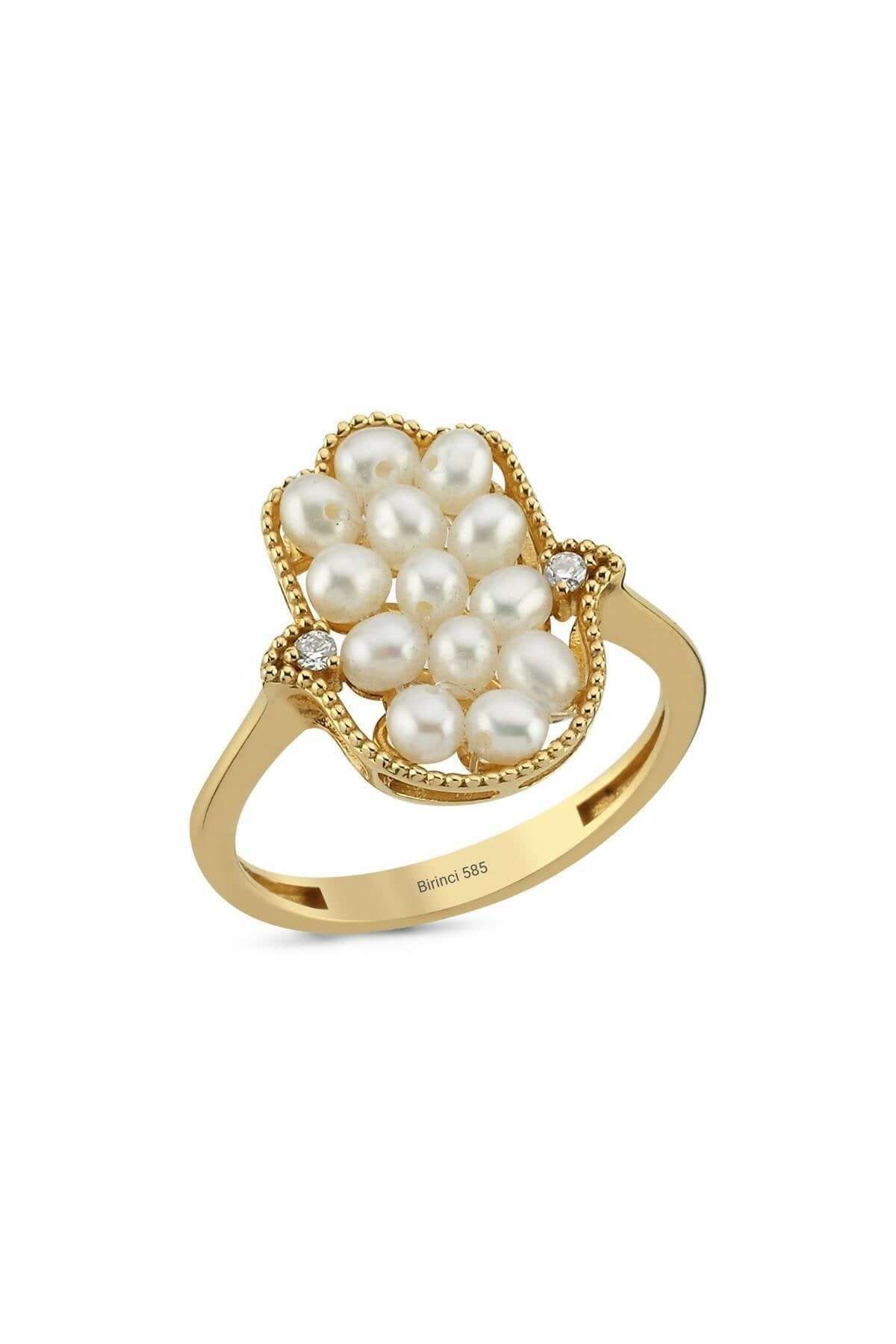 Ürün Adı: 14 Ayar Altın Fatma Elli Doğal İnci 0,08 Karat Pırlanta Yüzük