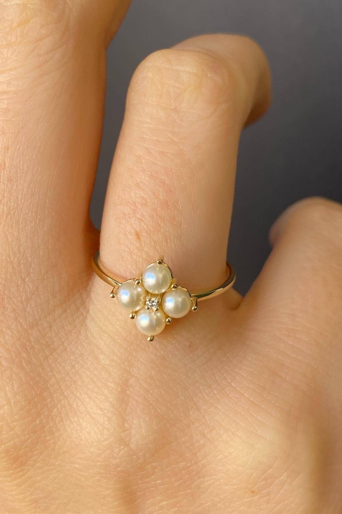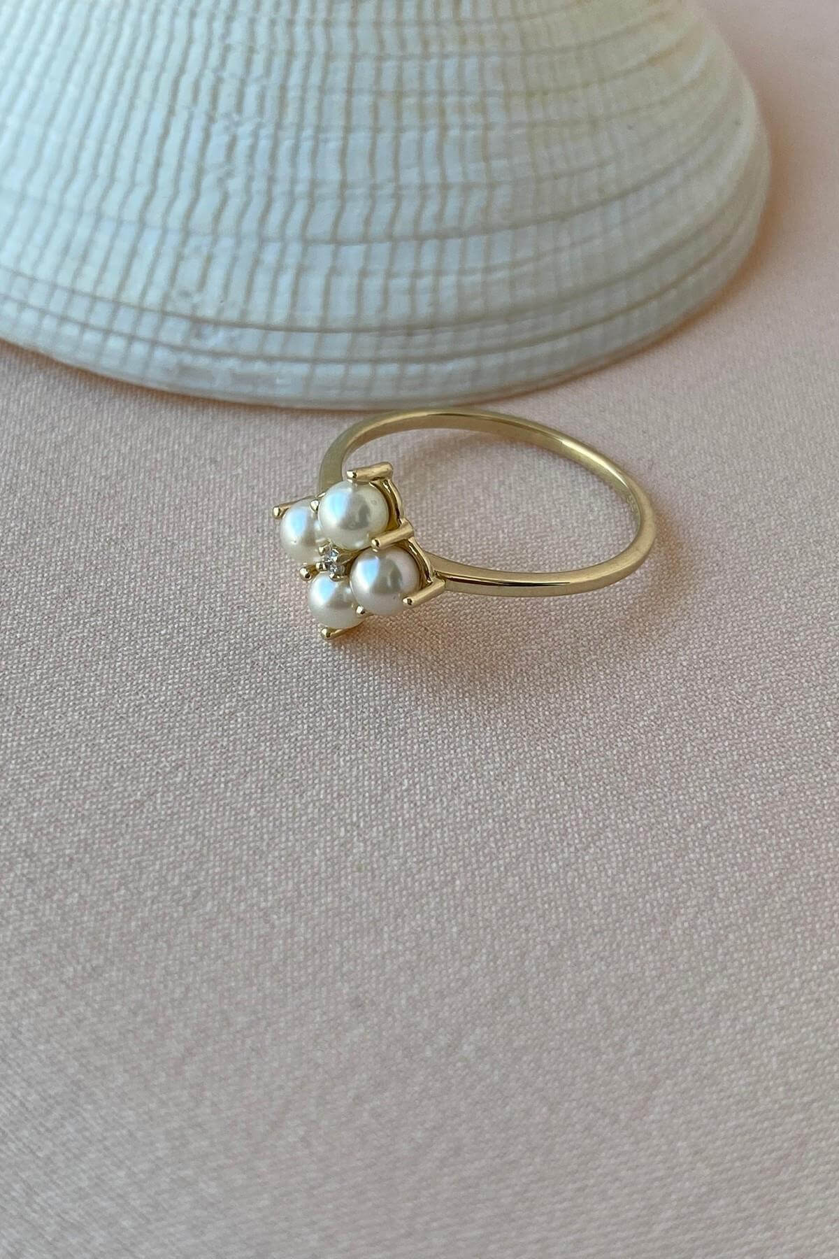Ürün Adı: 14 Ayar Altın Dört Doğal İncili 0,06 Karat Pırlanta Yüzük