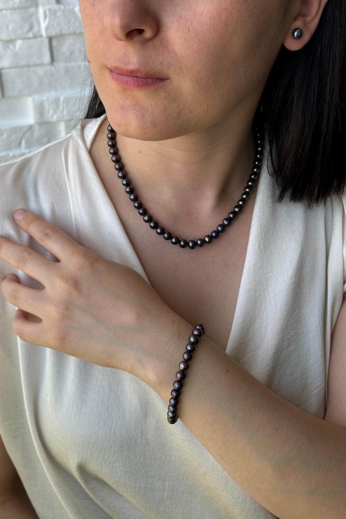 Ürün Adı: 925 Ayar Gümüş 7 mm Siyah Doğal İnci Sıralı Kolye