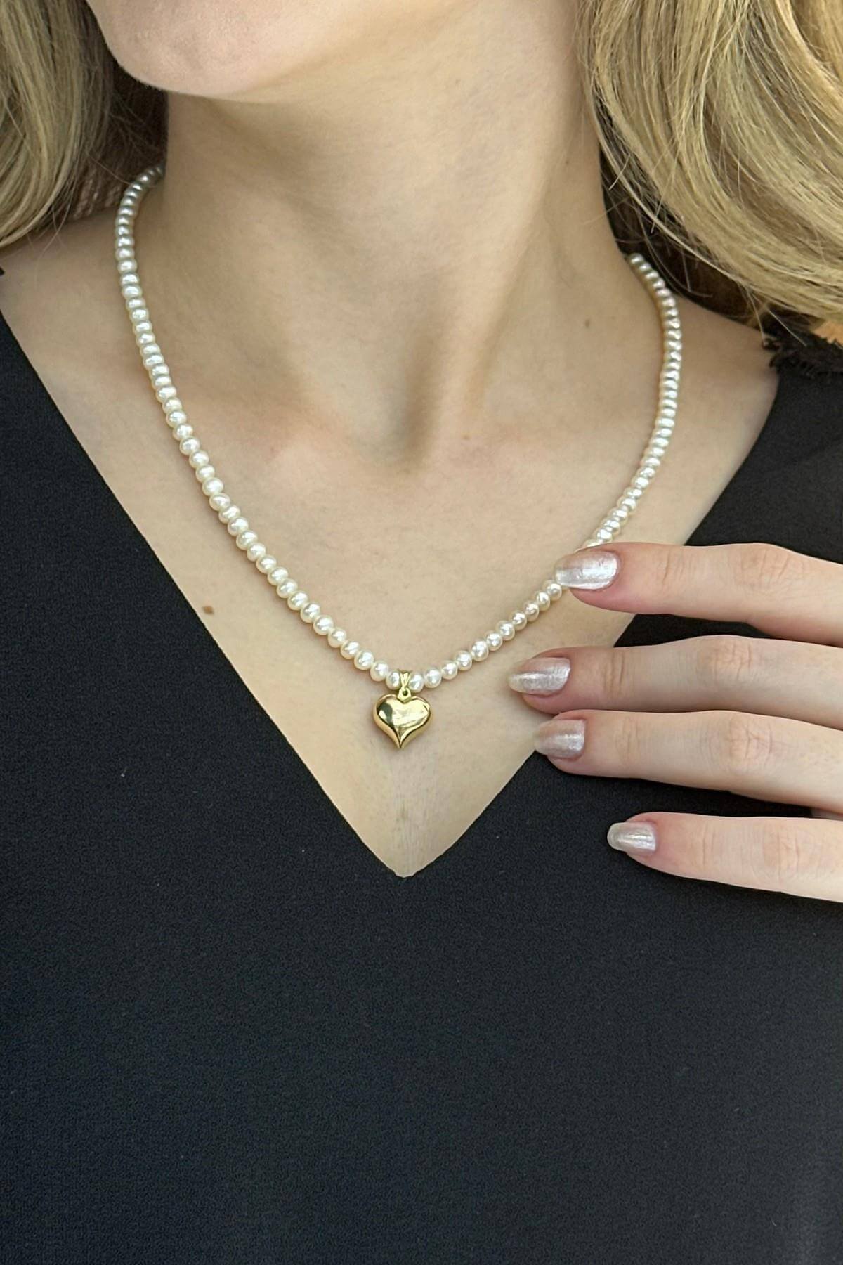 Ürün Adı: 14 Ayar Altın 5 mm Doğal İnci Kalpli Kolye