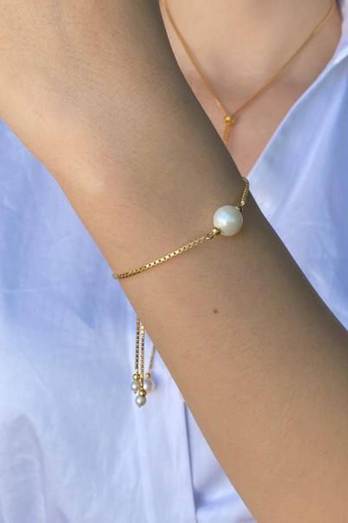Ürün Adı: 925 Ayar Gümüş Baget Doğal İnci Kadın Bileklik