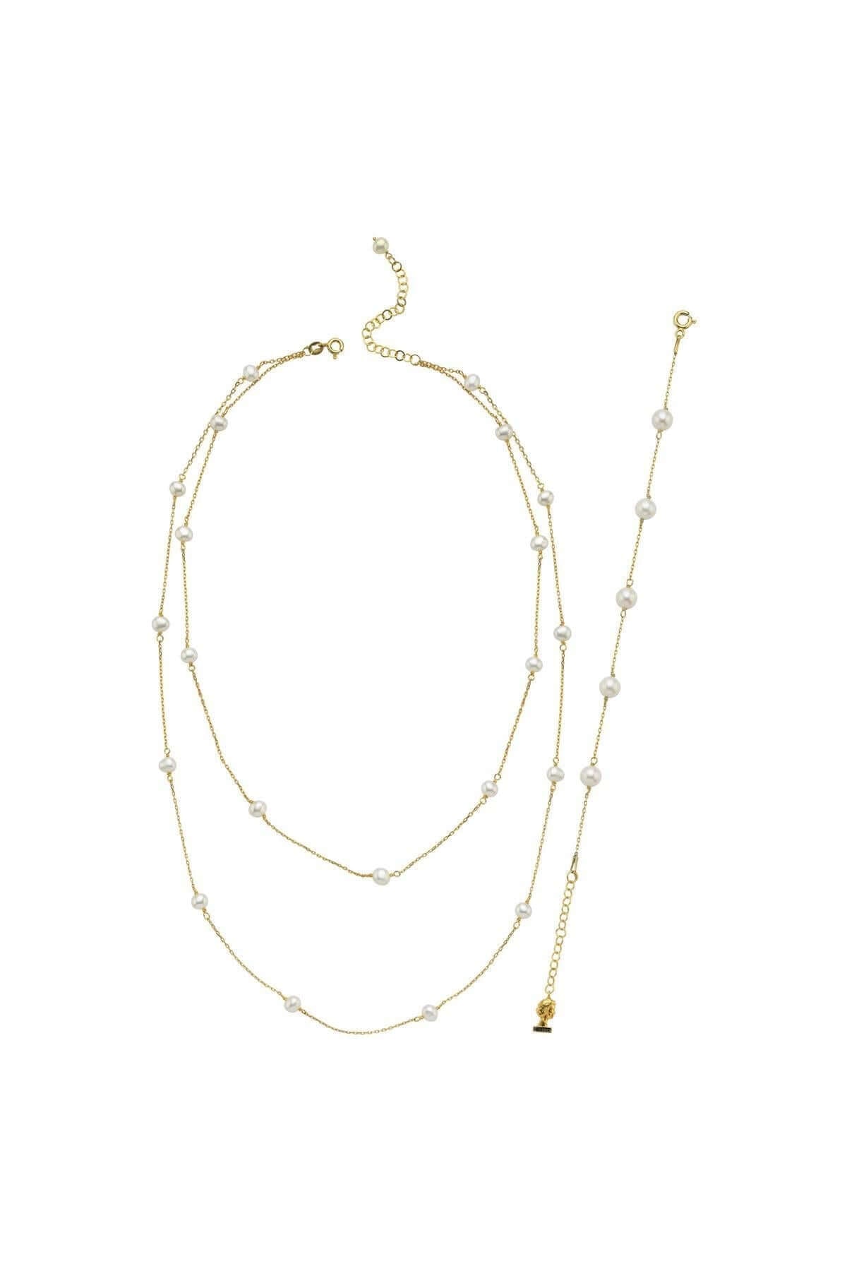Ürün Adı: 925 Ayar Gümüş Kadın Doğal İncili Kolye Bileklik İkili Set