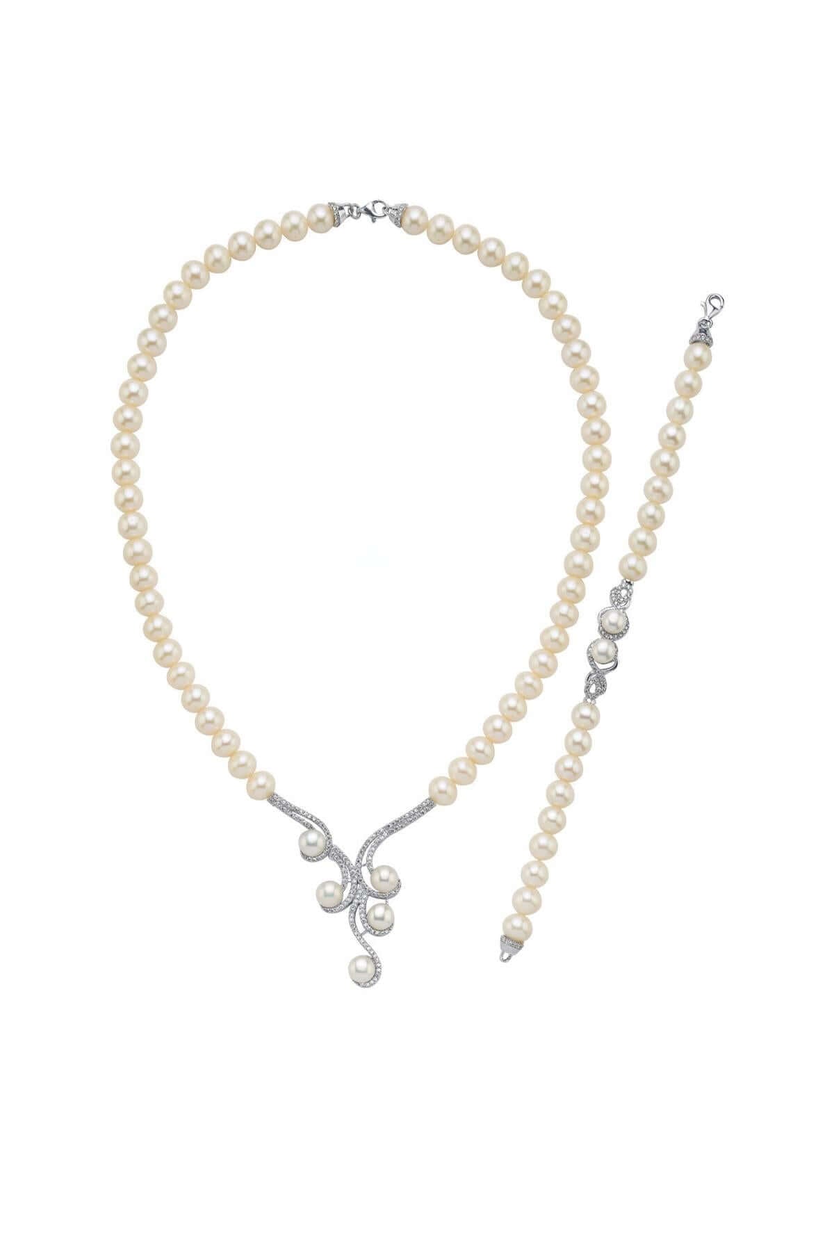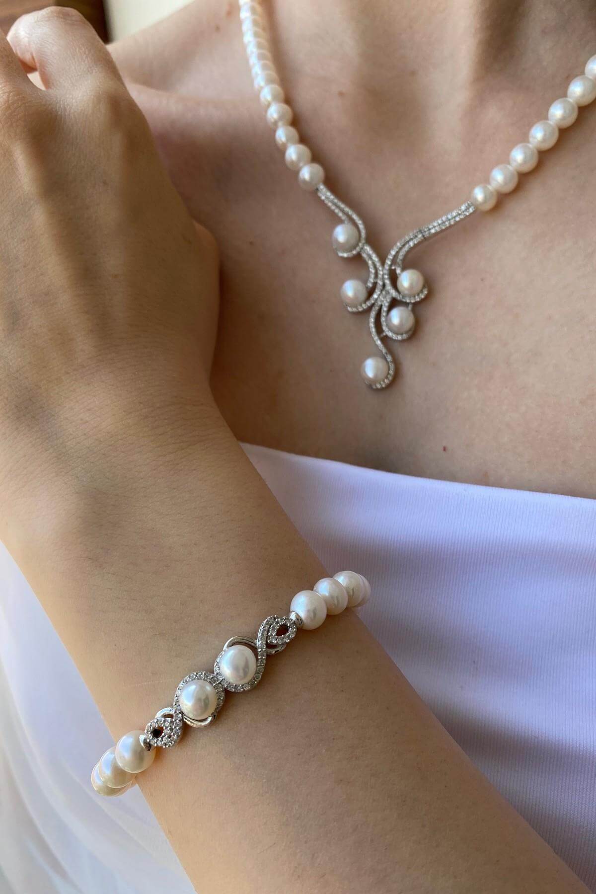 Ürün Adı: 925 Ayar Gümüş Dorikalı Doğal İnci Kadın Kolye Bileklik İkili Set