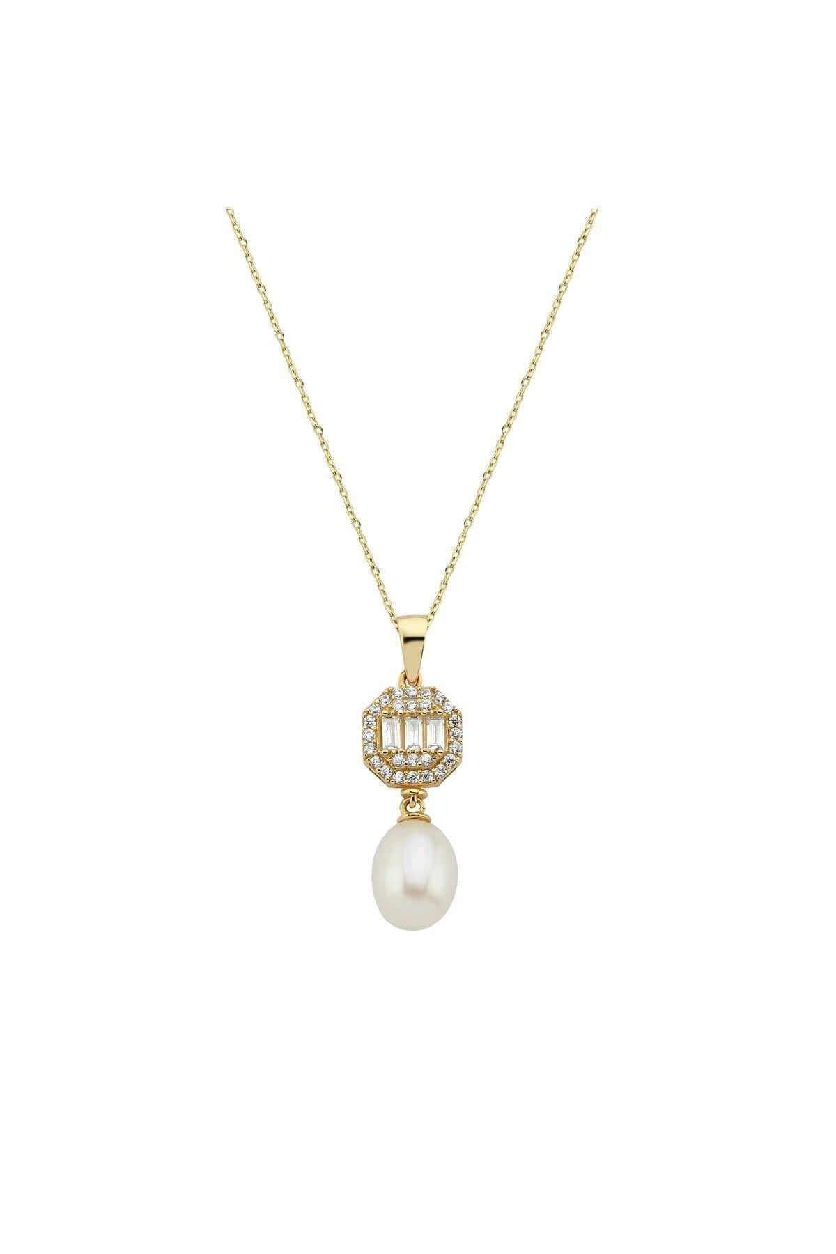 Ürün Adı: 14 Ayar Altın 9 mm Baget Sekizgen Doğal İncili Sallantı Kolye