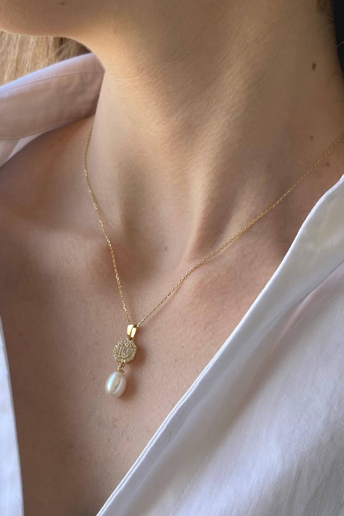 Ürün Adı: 14 Ayar Altın Doğal İnci Taşlı Kolye