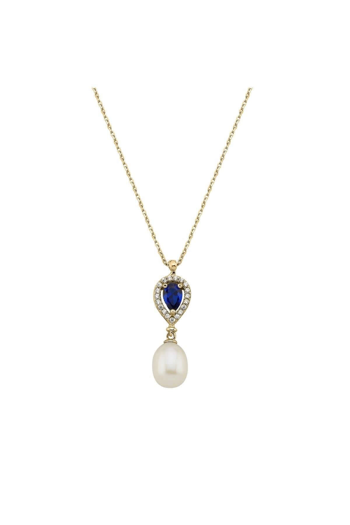 Ürün Adı: 14 Ayar Altın 9 mm Mavi Renk Taşlı Doğal İnci Sallantı Kolye