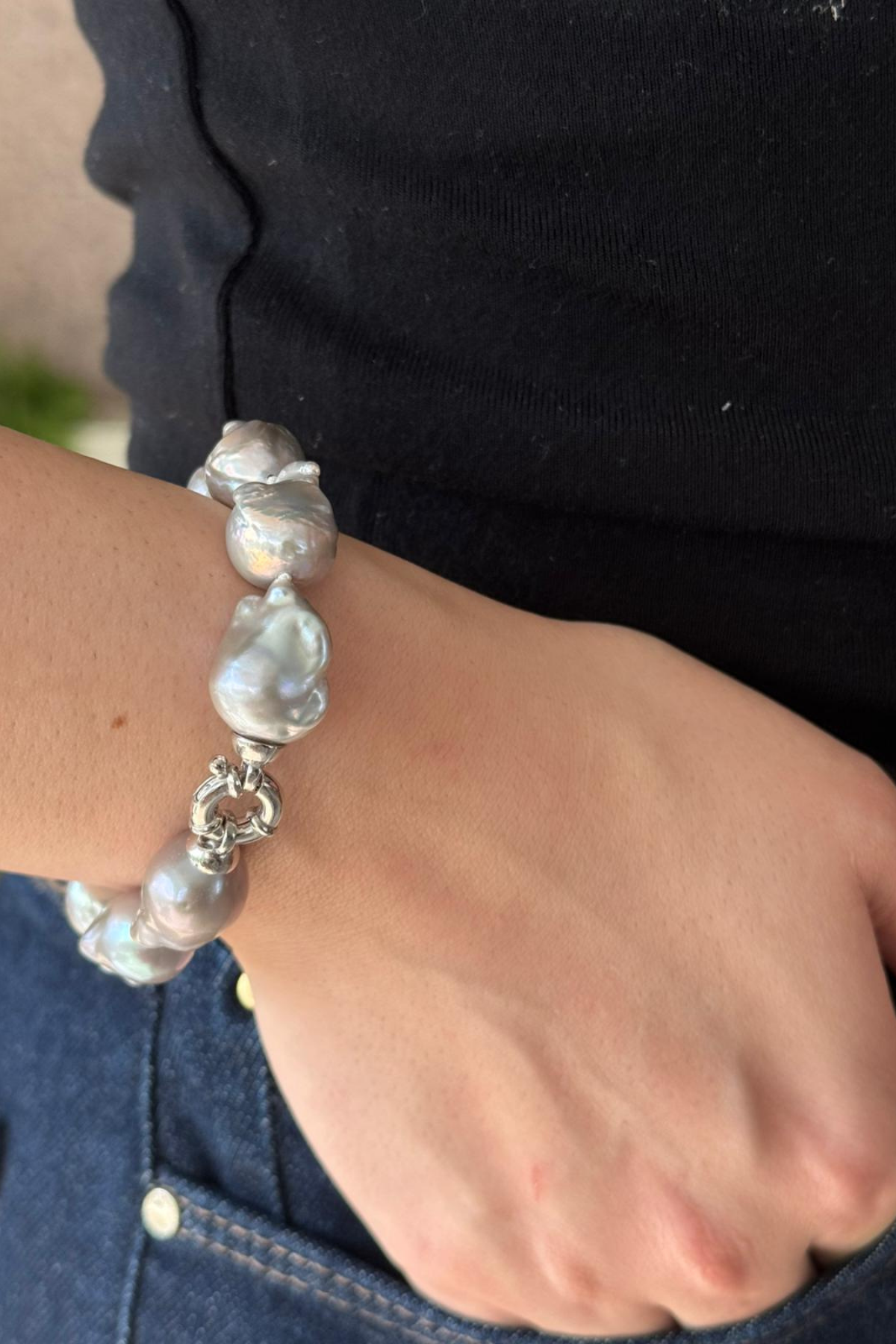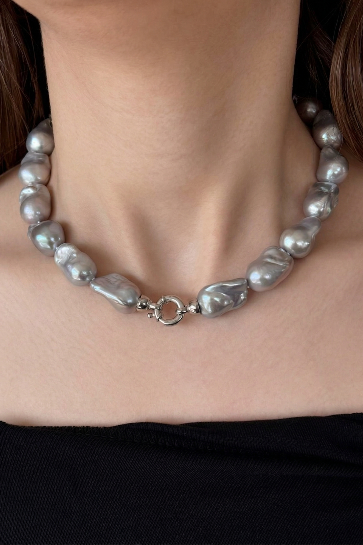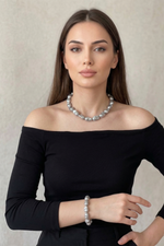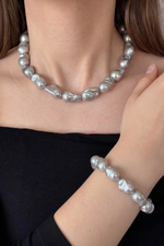 Gri Barok İnci Kolye Bileklik Set