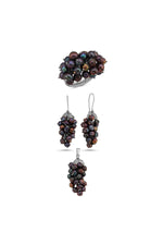 Üzüm Salkımı Doğal İnci Küpe Kolye Yüzük Üçlü Set