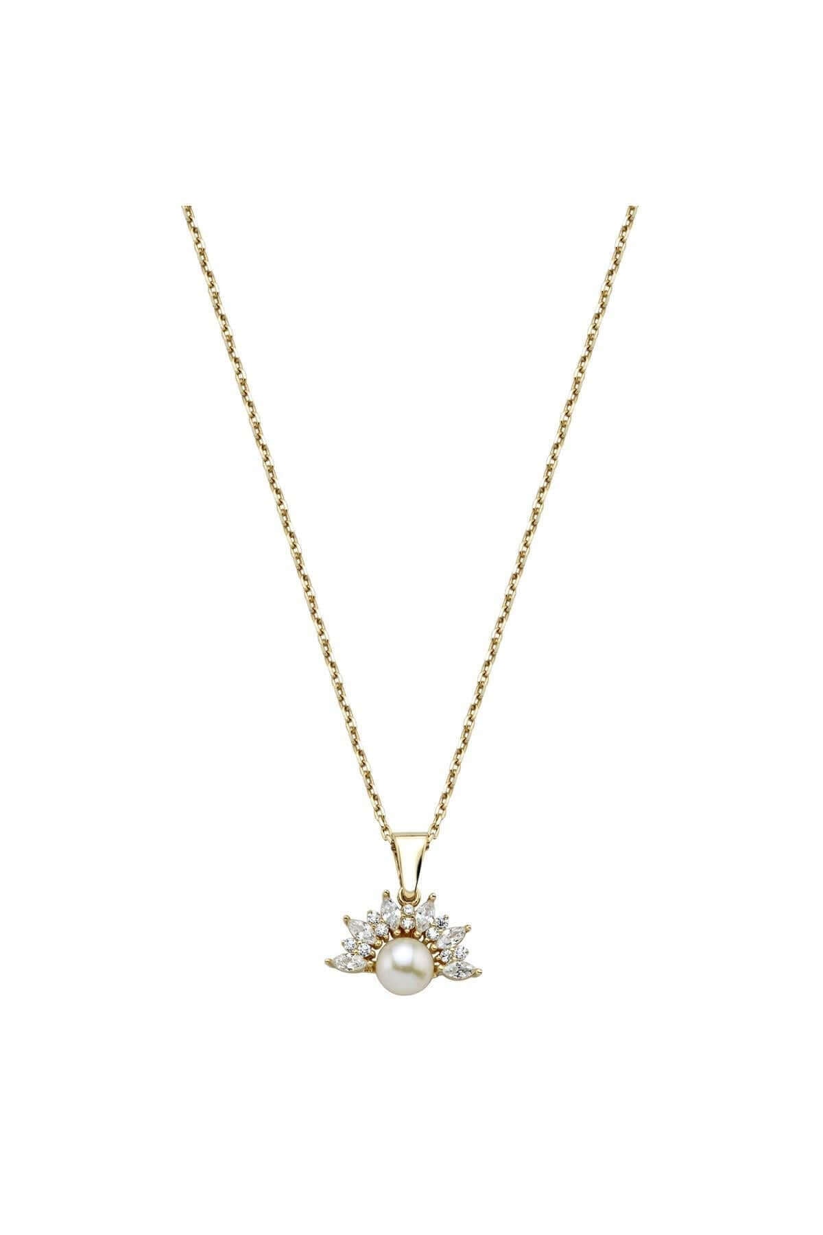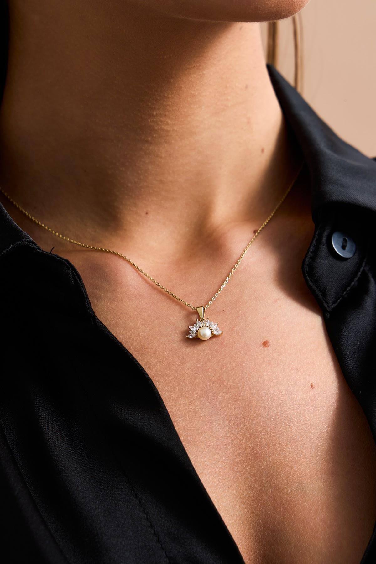 Ürün Adı: 14 Ayar Altın 6 mm Yarım Çiçek Modelli Doğal İnci Kolye