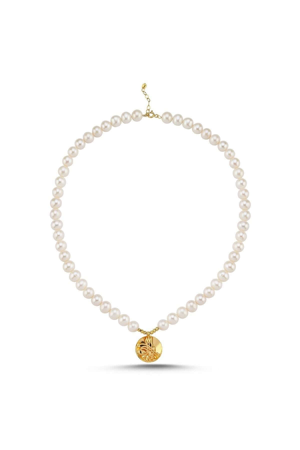 Ürün Adı: 14 Ayar Altın 7 mm Osmanlı Tuğralı Doğal İnci Kolye