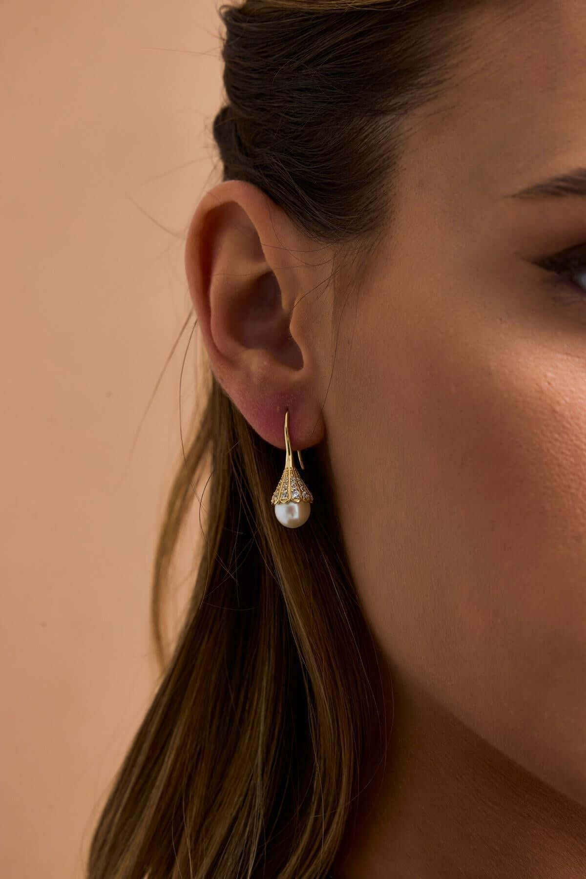 Ürün Adı: 14 Ayar Altın 9 mm Ampul Modelli Doğal İncili Küpe