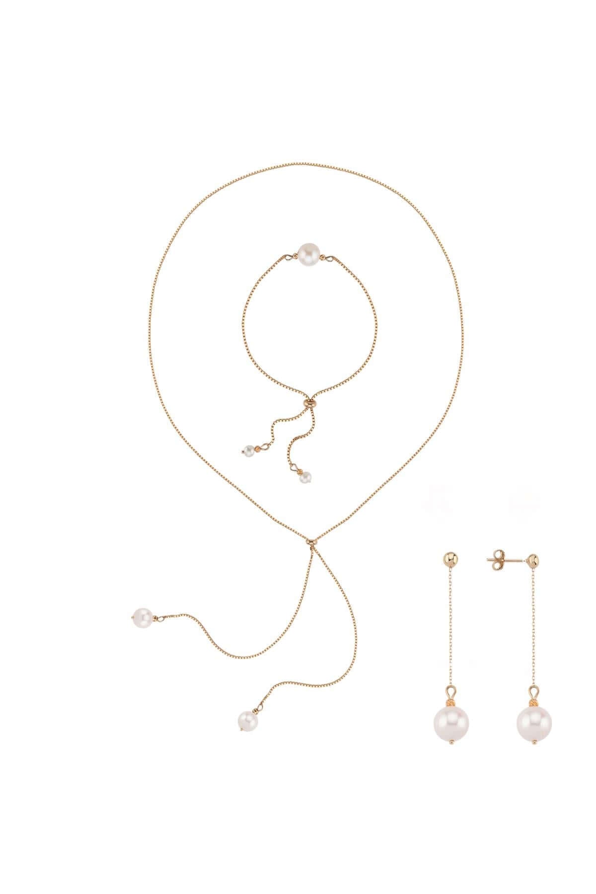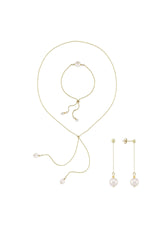 Asansörlü Doğal İnci Küpe Kolye Bileklik Üçlü Set