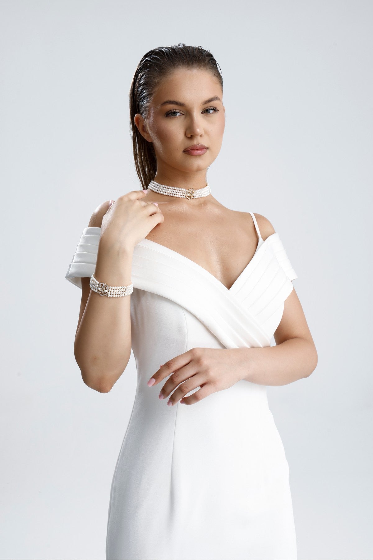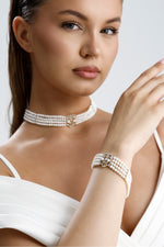 Lale Motif Dört Sıralı Doğal İnci Bileklik