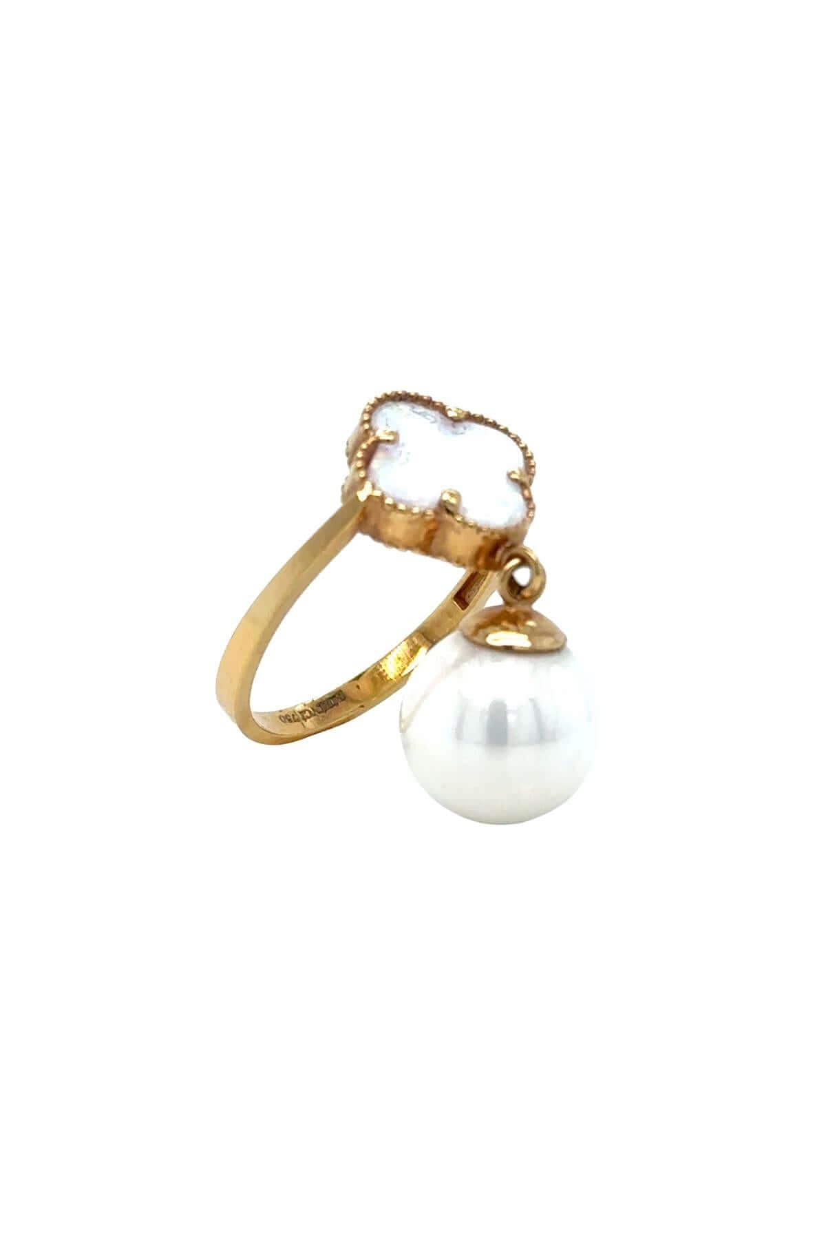 Ürün Adı: 18 Ayar Altın 10 mm Doğal İnci Çiçek Motifli Yüzük