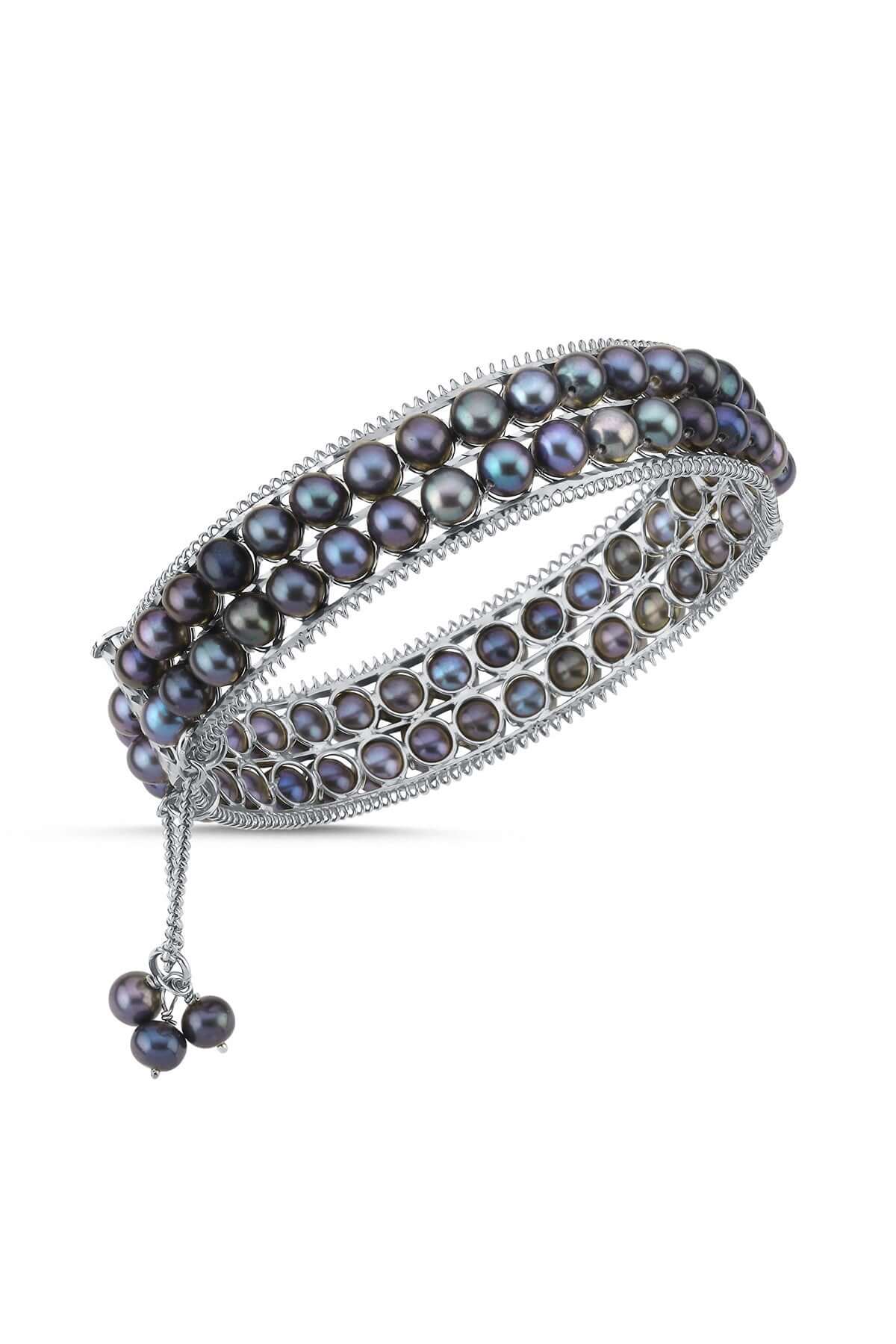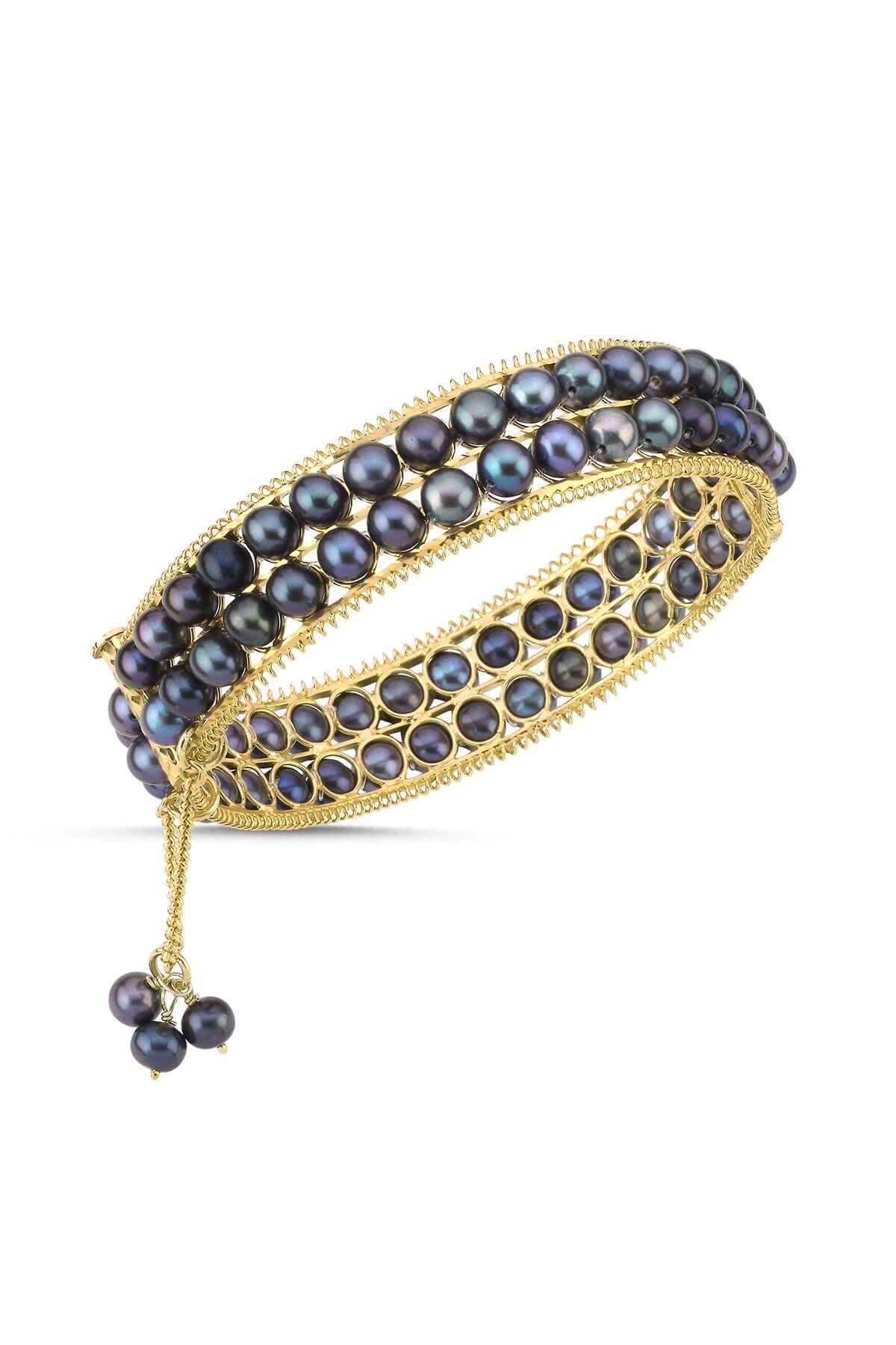 Çift Sıra Doğal Siyah İnci Kelepçe Bileklik