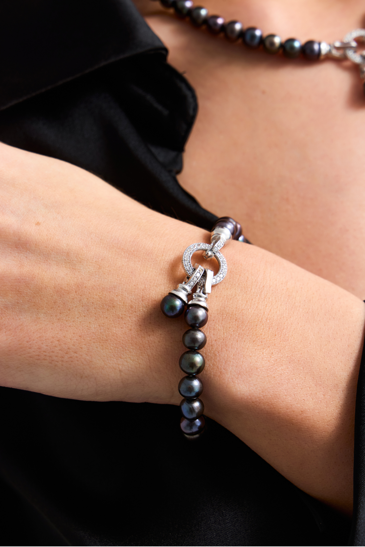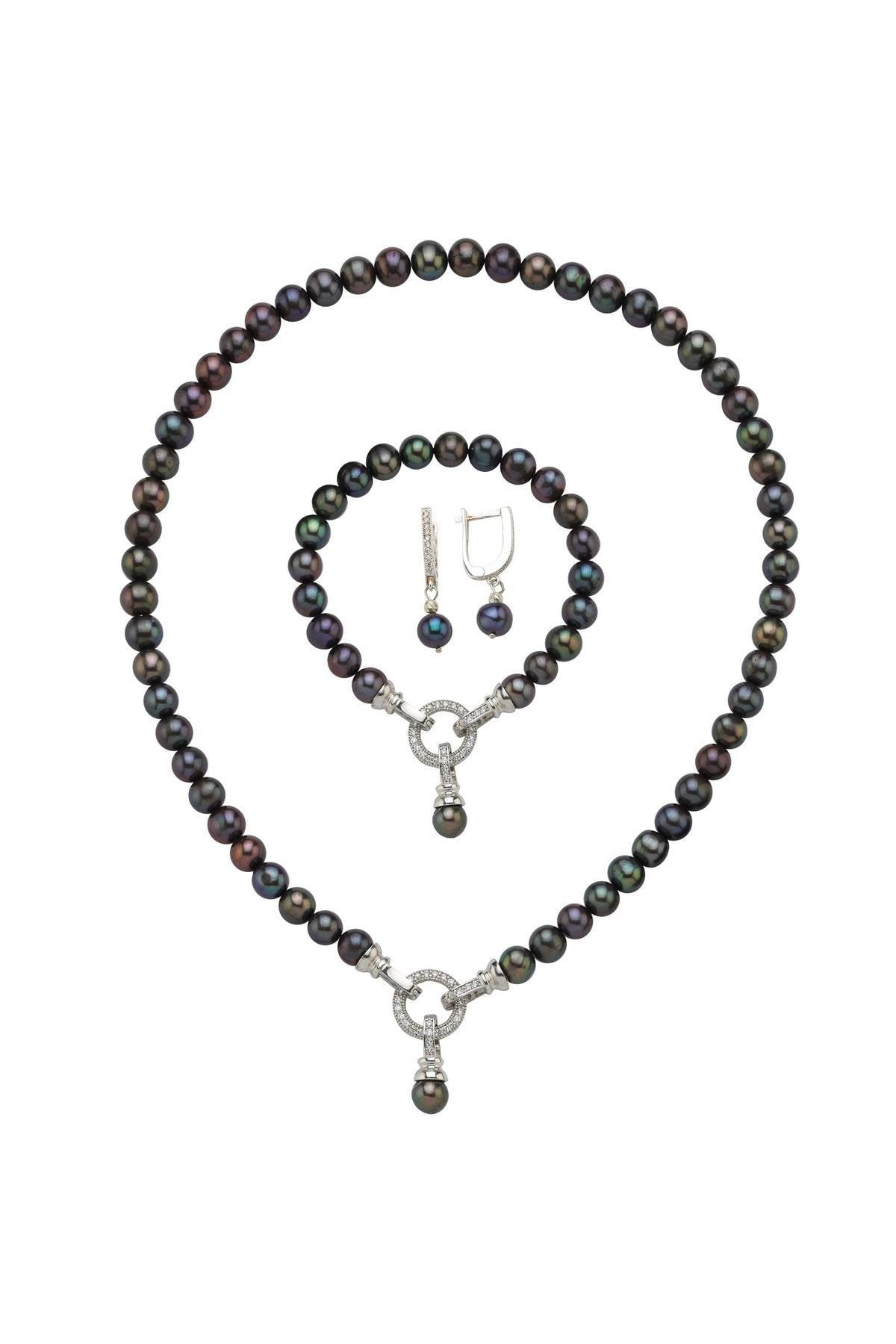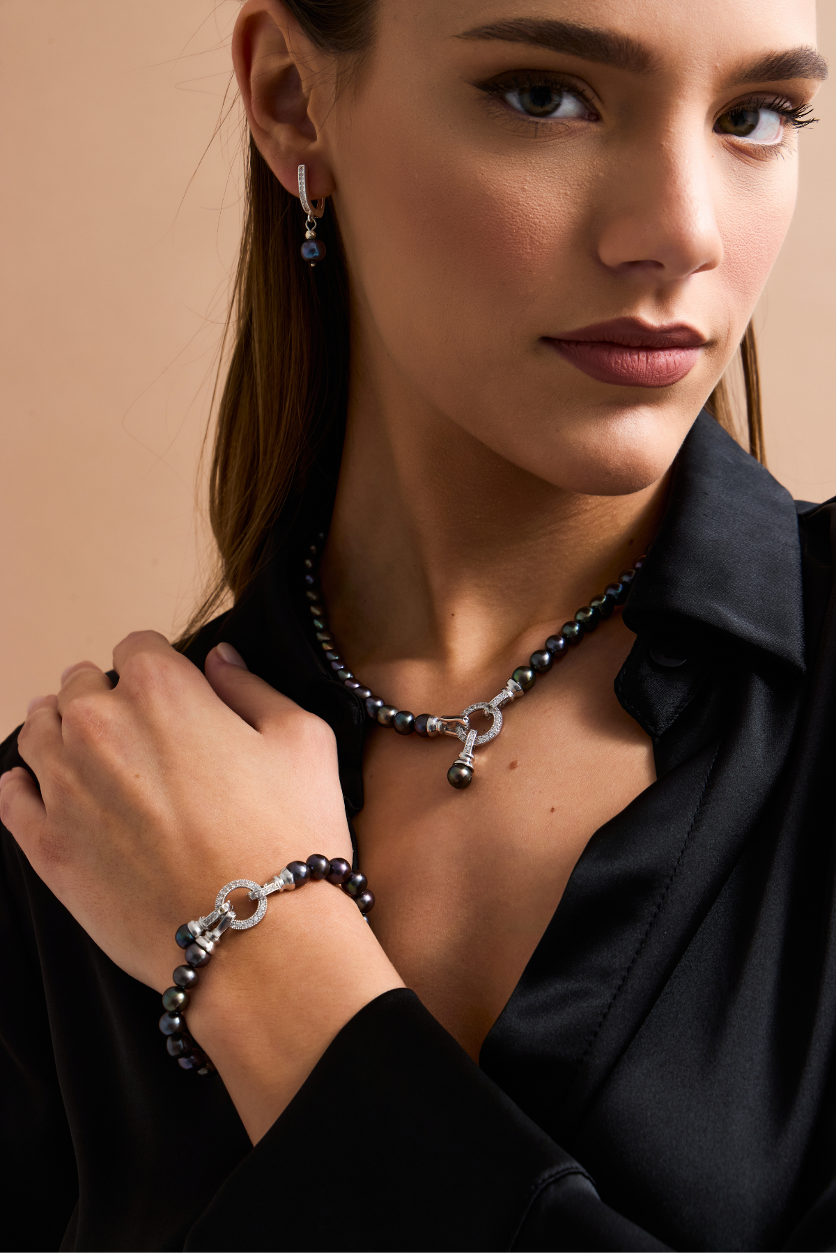 Zirkon Taşlı Halka Kilitli Doğal İnci Küpe Kolye Bileklik Üçlü Set
