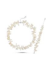 Doğal Çubuk Barok İnci Kolye Bileklik İkili Set