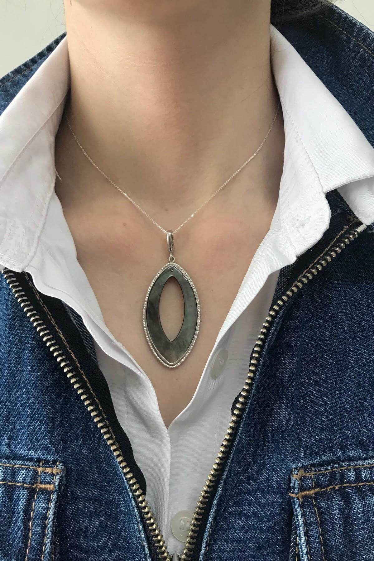 Oval Sedef Taşlı Kolye