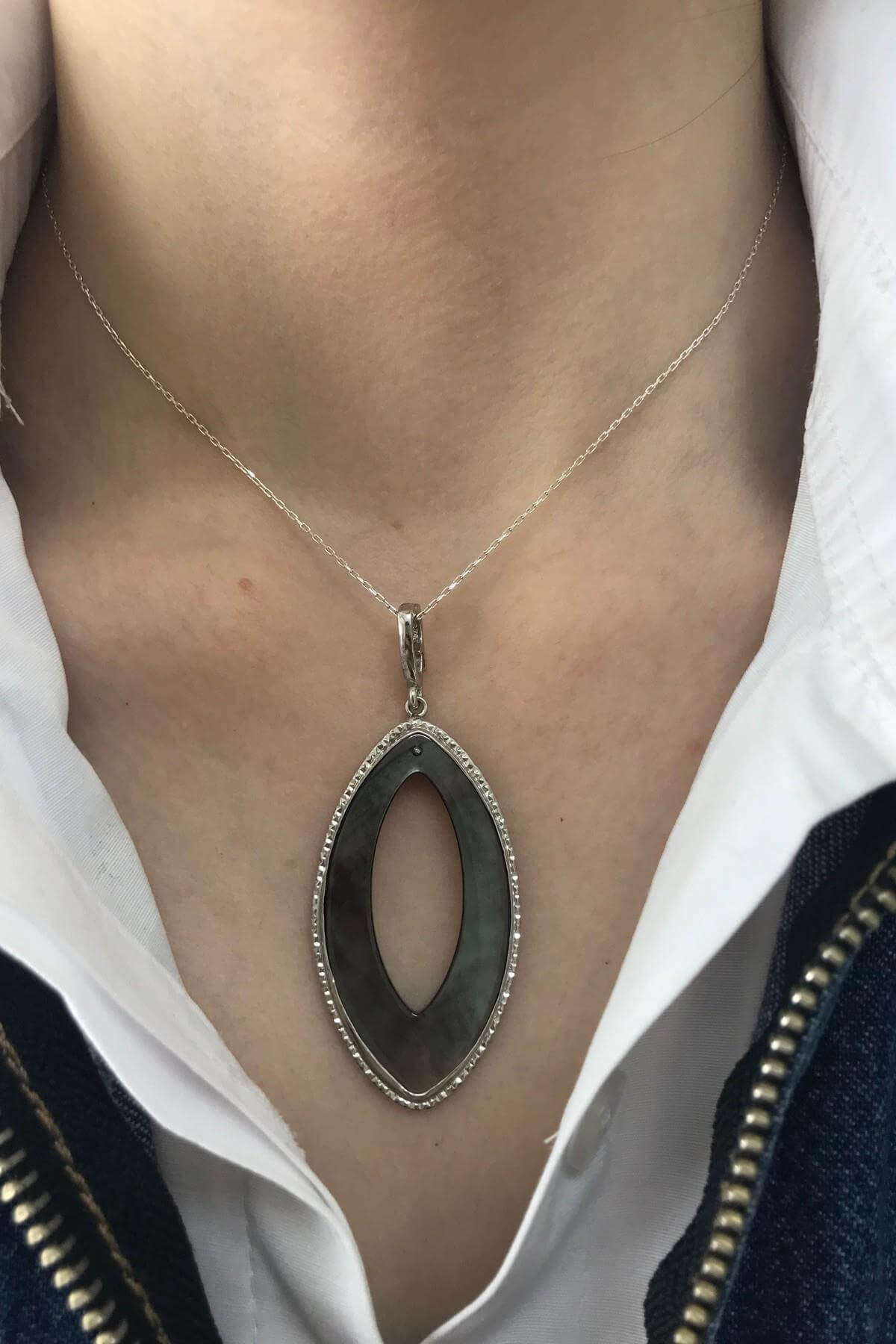 Ürün Adı: 925 Ayar Gümüş Oval Sedef Taşlı Kadın Kolye