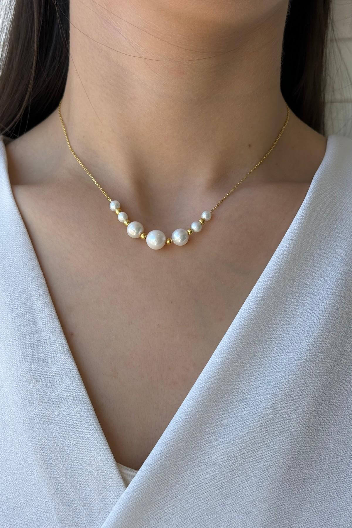 -Ürün Adı: Sıralı Süzme İnci Dorika Toplu 9 mm Kolye