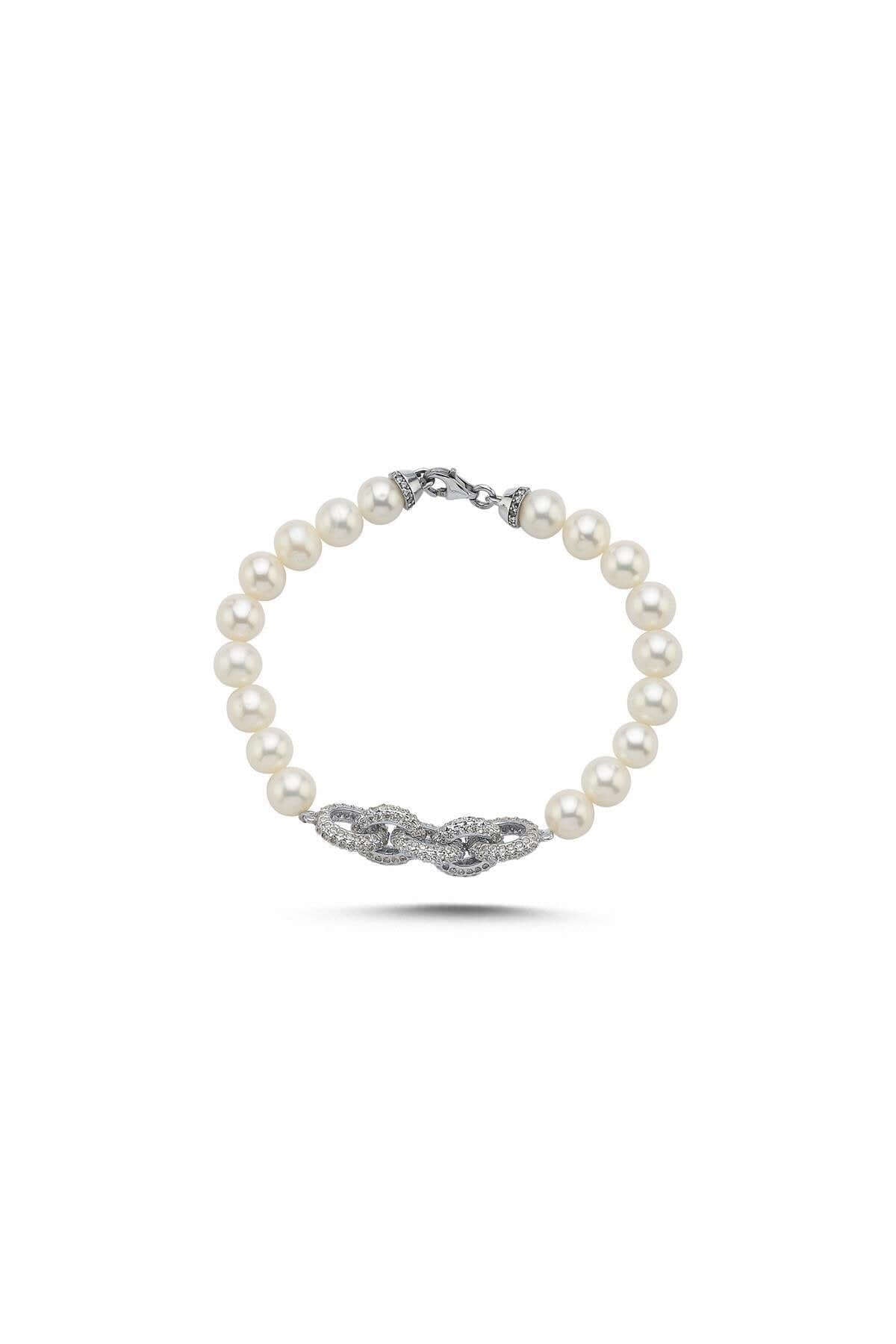 Zirkon Taşlı Halka Zincir Doğal İnci Bileklik